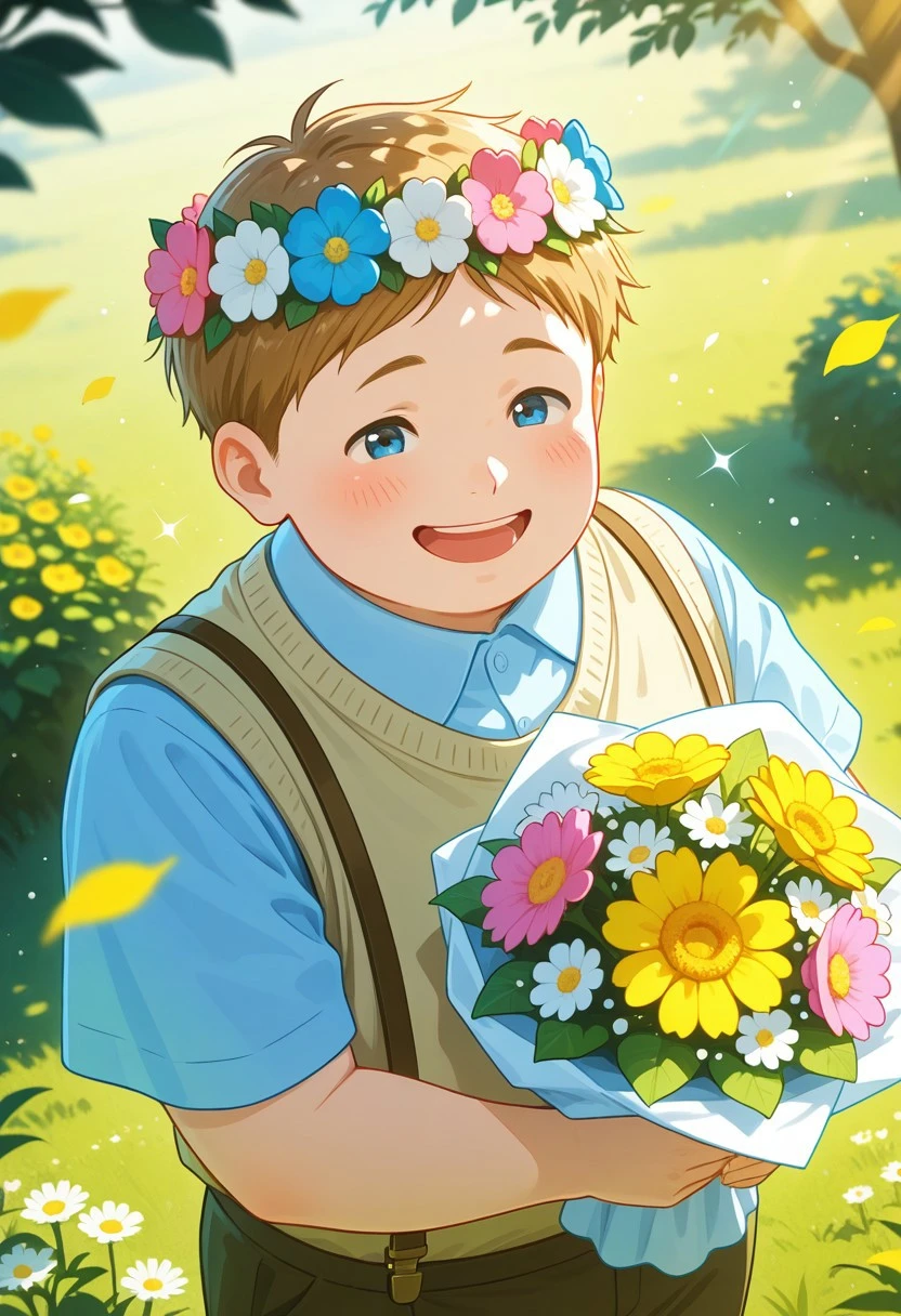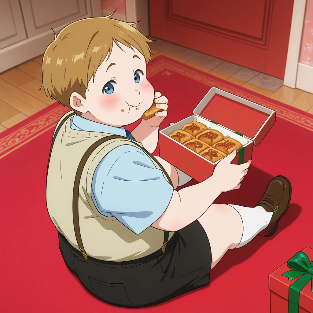 1. vegmartyb, brown_hair, 1boy, young, fat, (chubby face), solo,