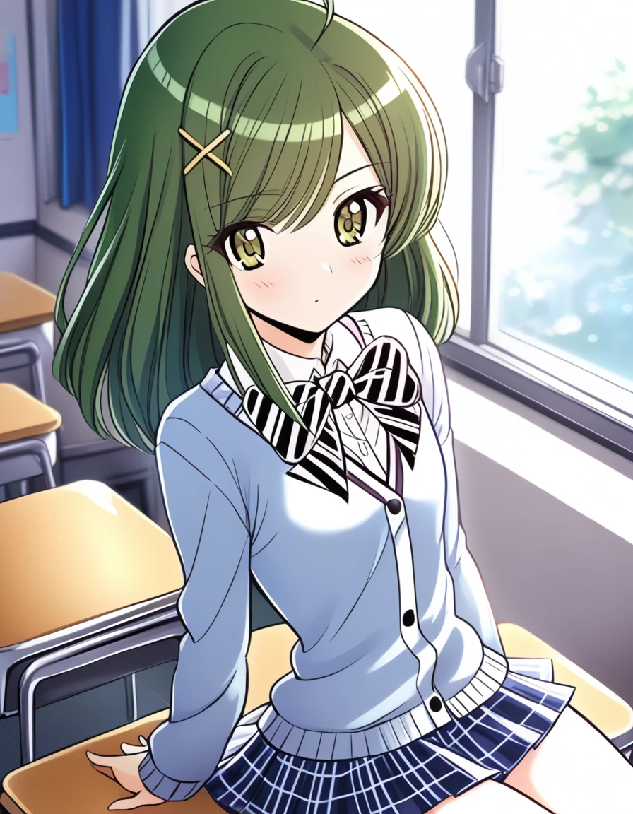 tachibana yuria, x hair ornamentIf hair color is unstable, add "green hair" (It's official hair color)