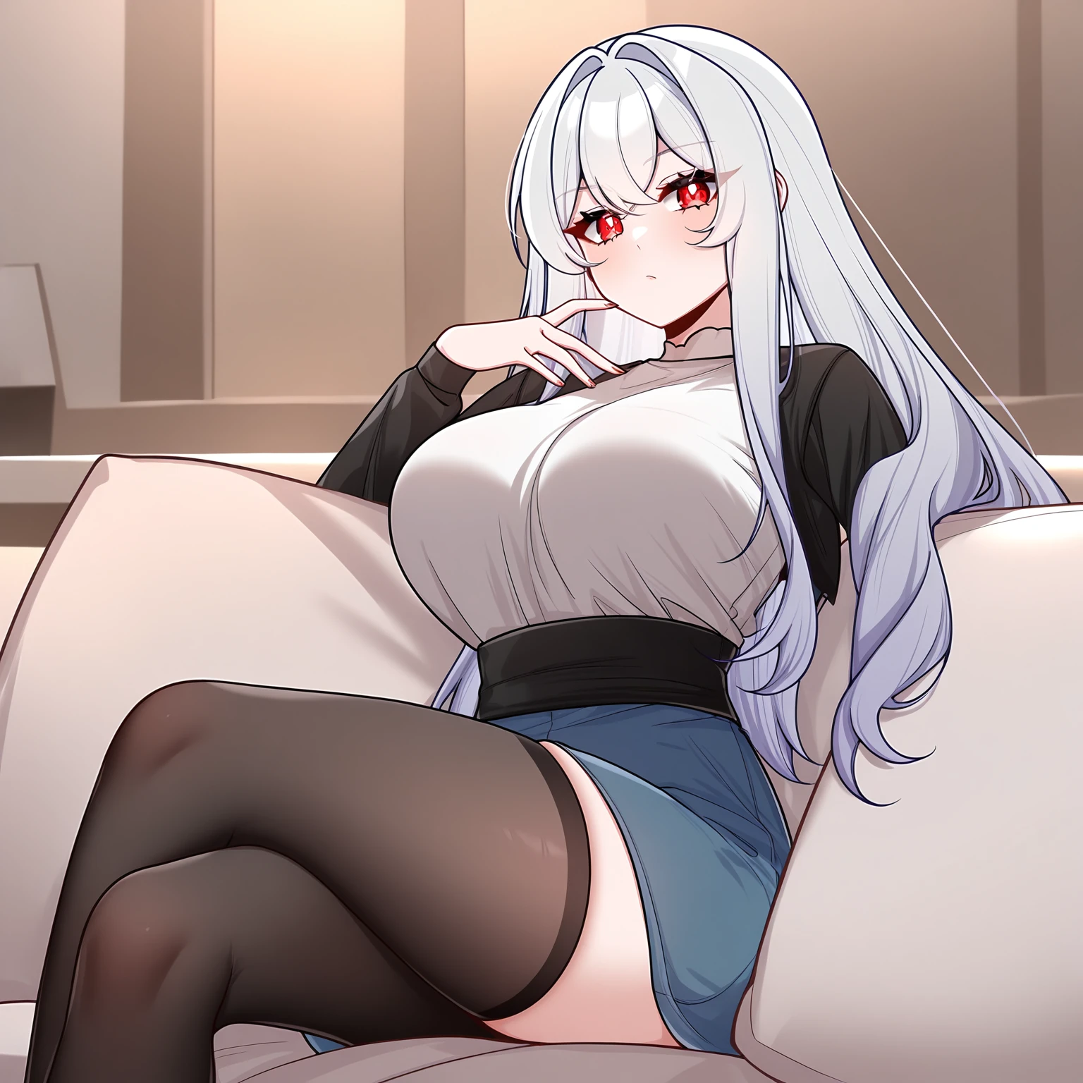 tang_xin,long hair,red eyes,silver hair,
