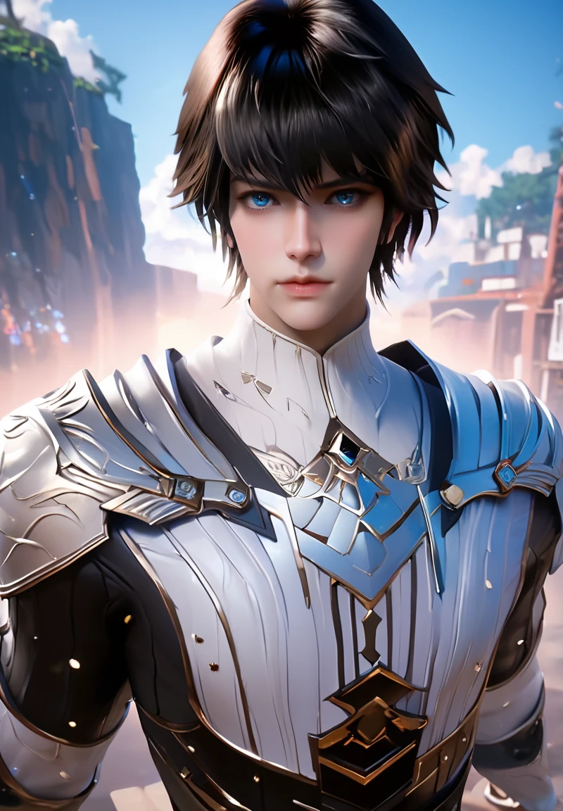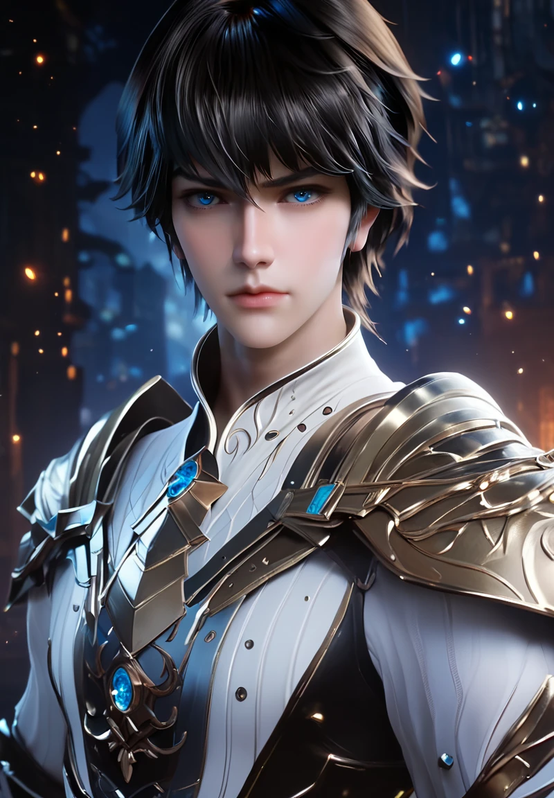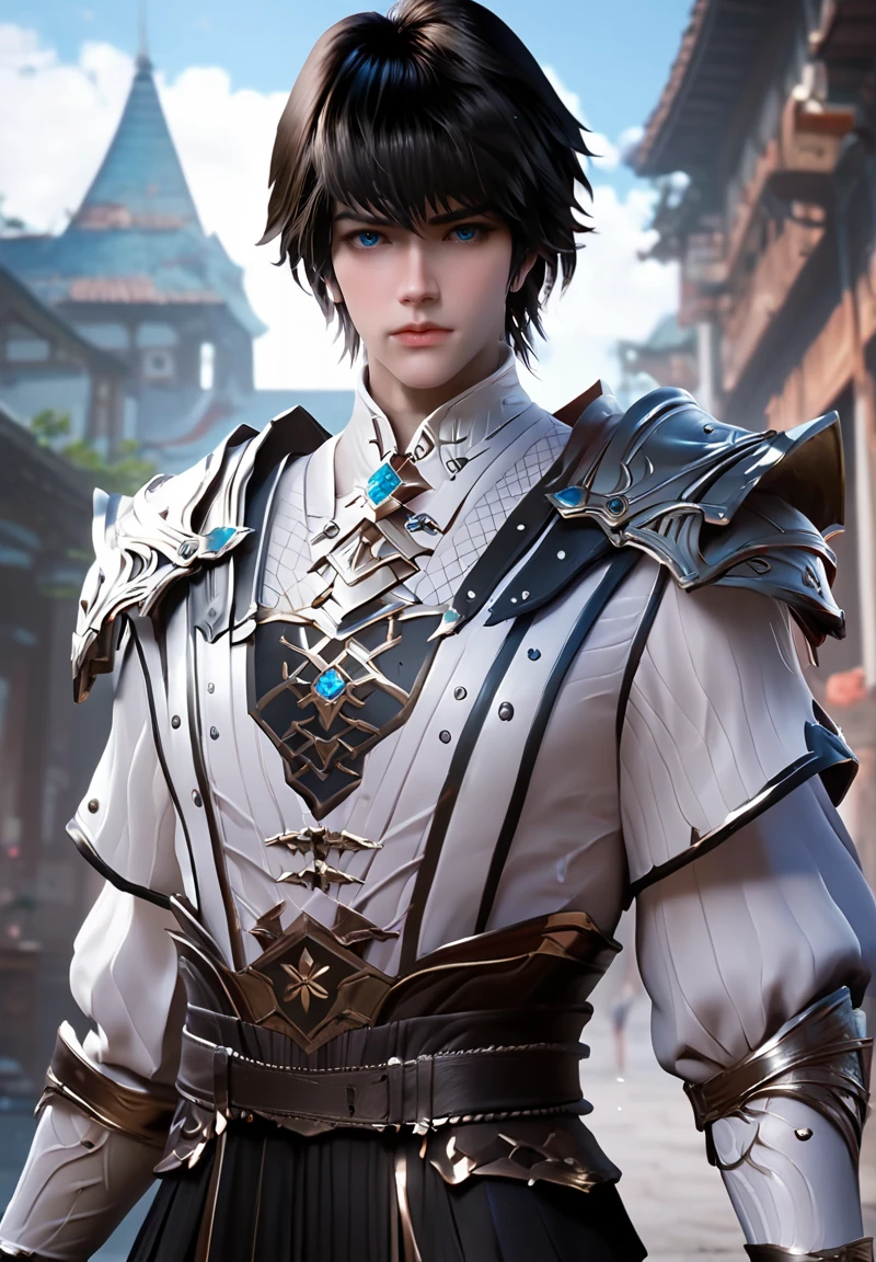1boy,long_haochen,male focus,blue eyes,short hair,black hair