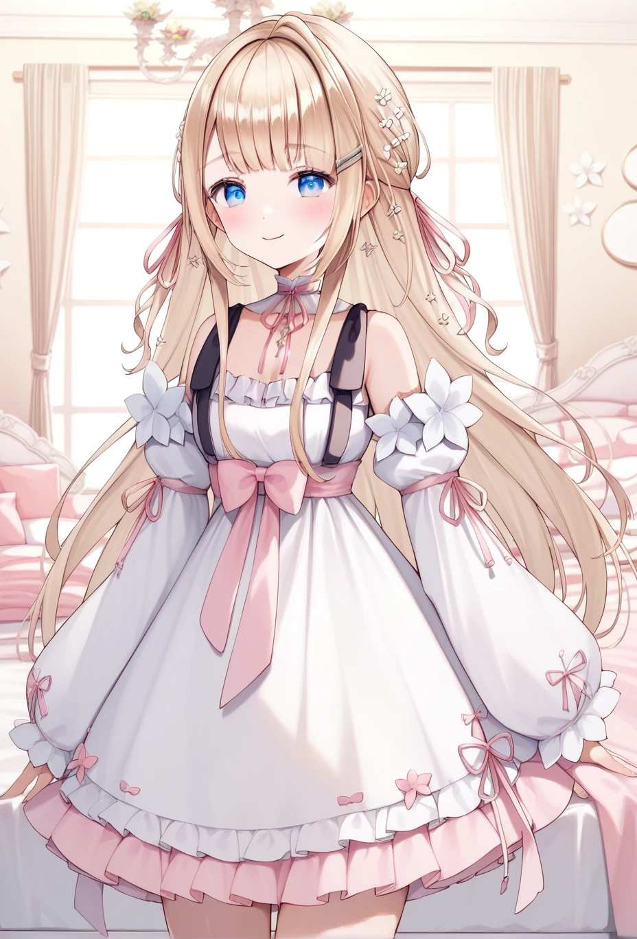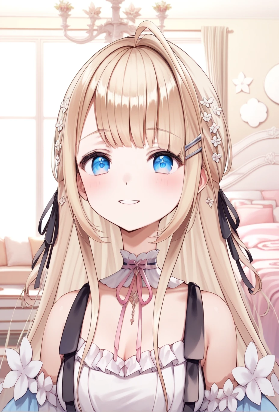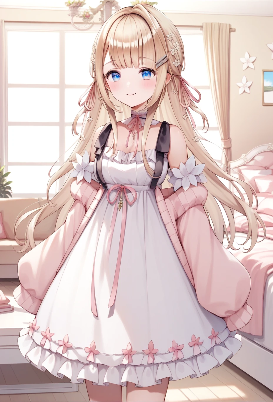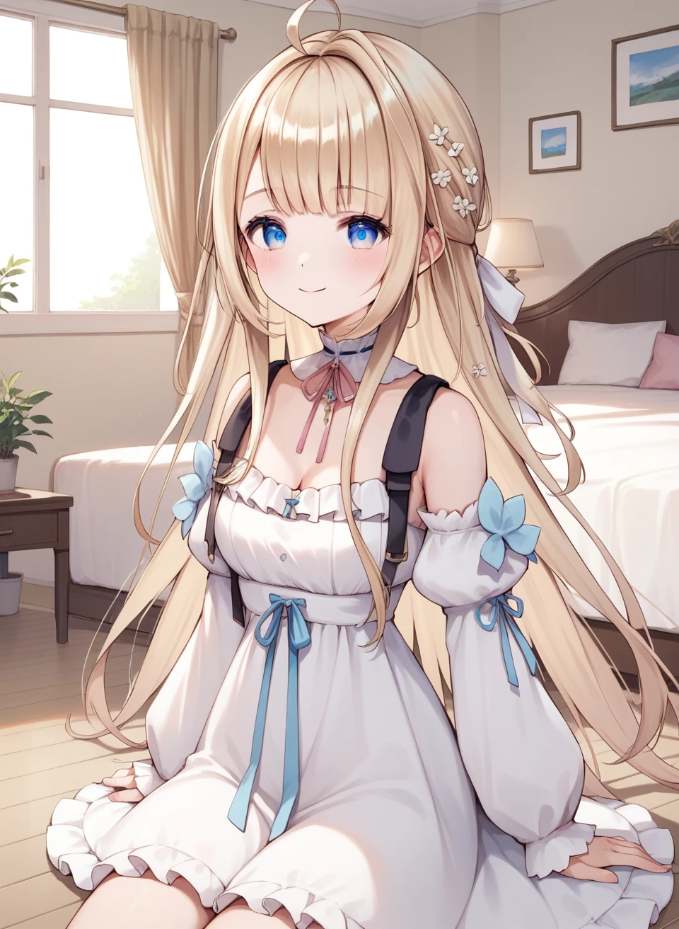 1girl, virtual youtuber, long hair, blonde hair, blue eyes, dress
