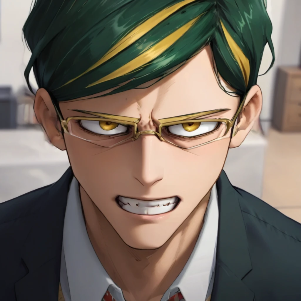 green hair, yellow hair, two-toned hair, short hair
