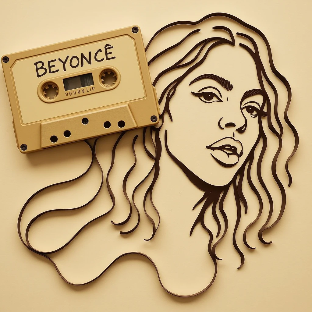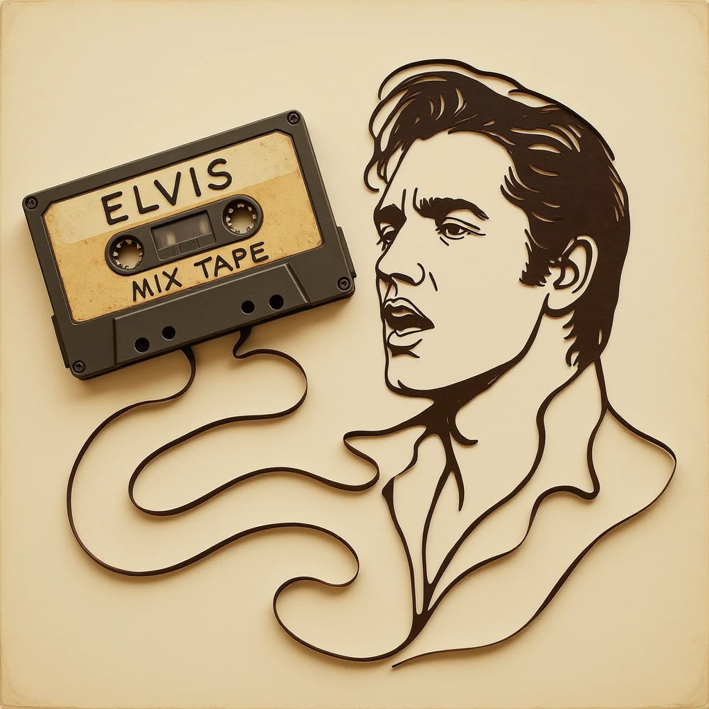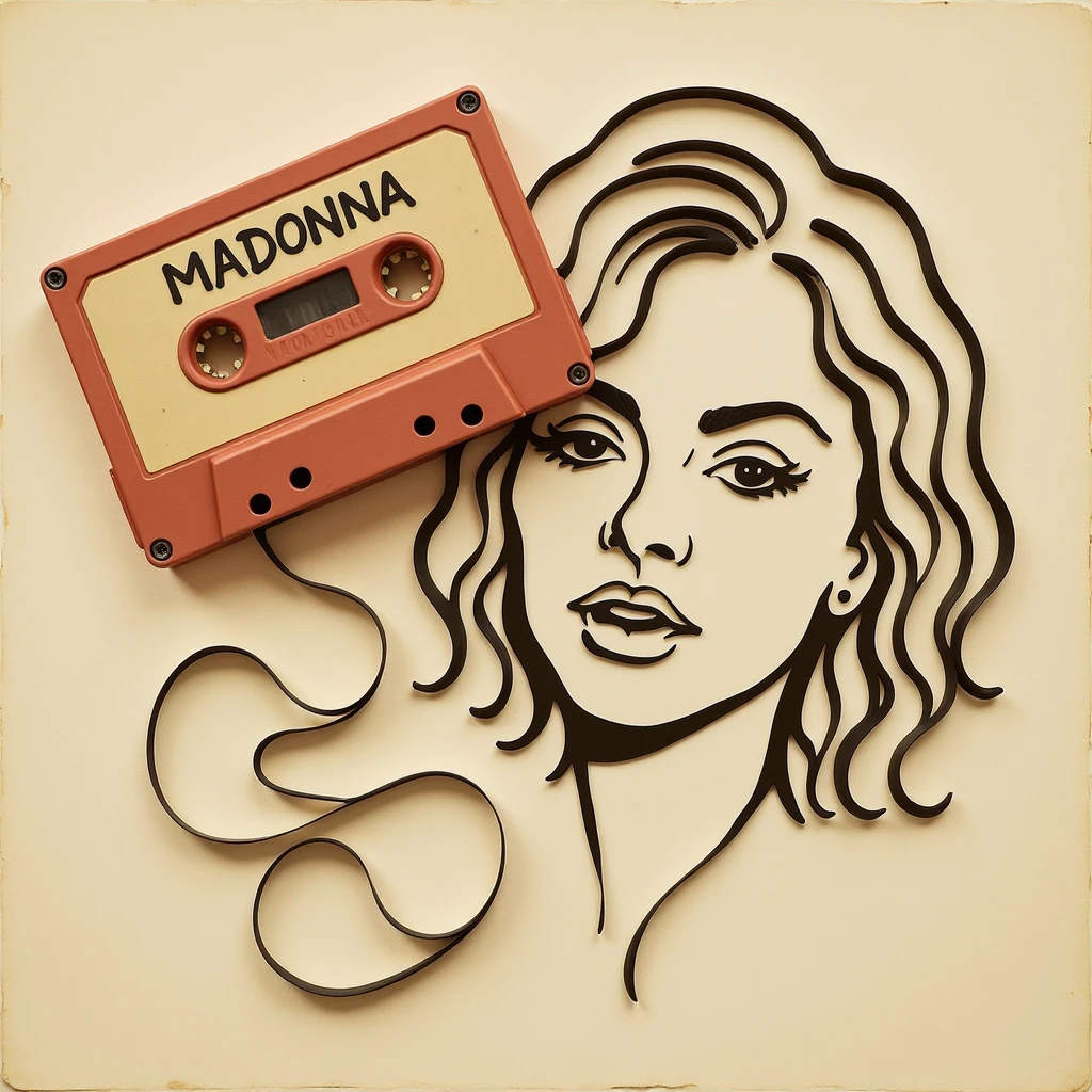 Decossette art style, vintage-style cassette with the text "#text", A magnetic tape comes out of the cassette, the magnetic tape creates outline shape of #shape made only of magnetic tape, realistic magnetic tape teture, magnetic tape concept art, high detail photo, the #shape is made only of magnetic tape