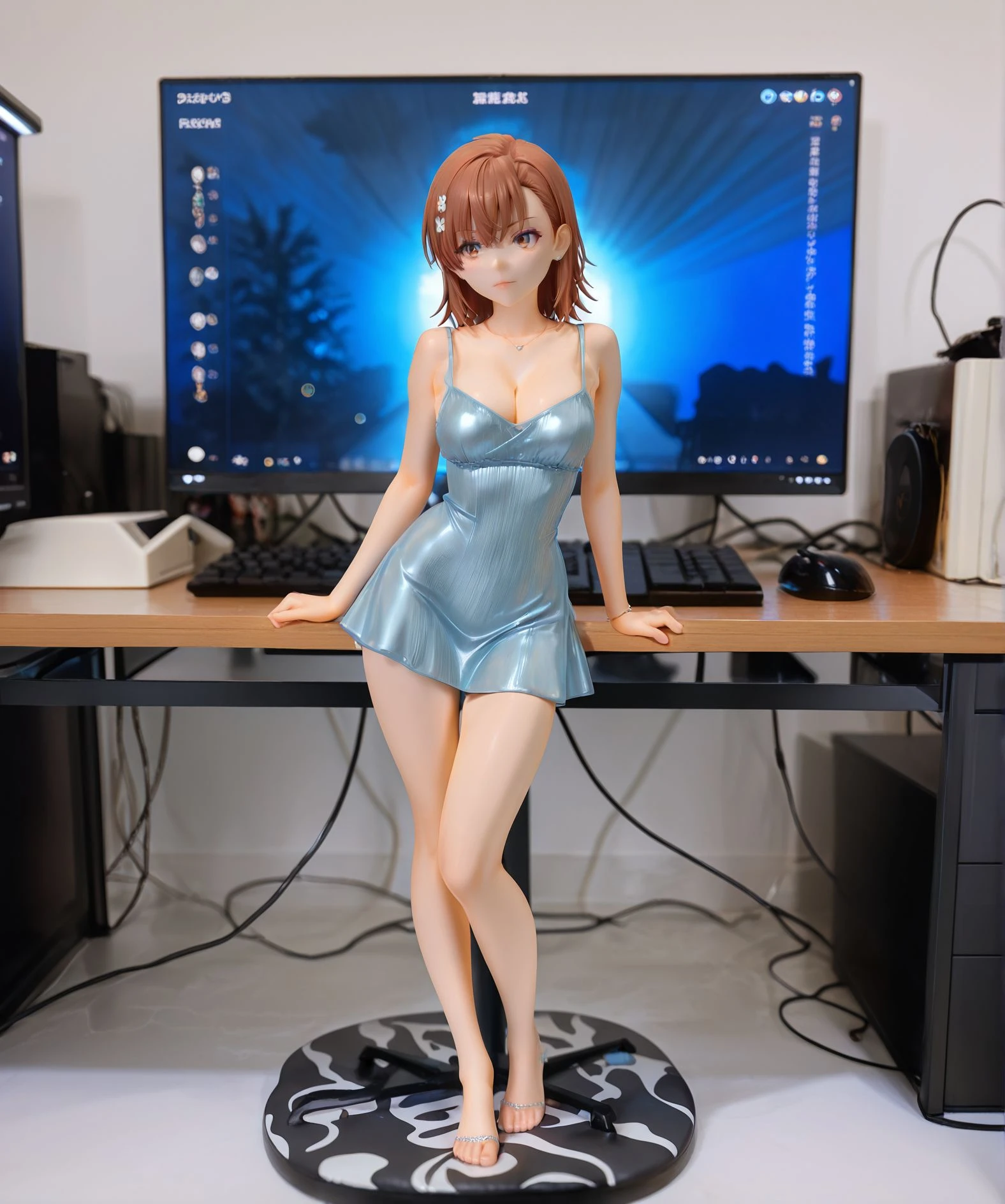 figure,5 fingers,realistic, on a computer desk, PC monitor in background,