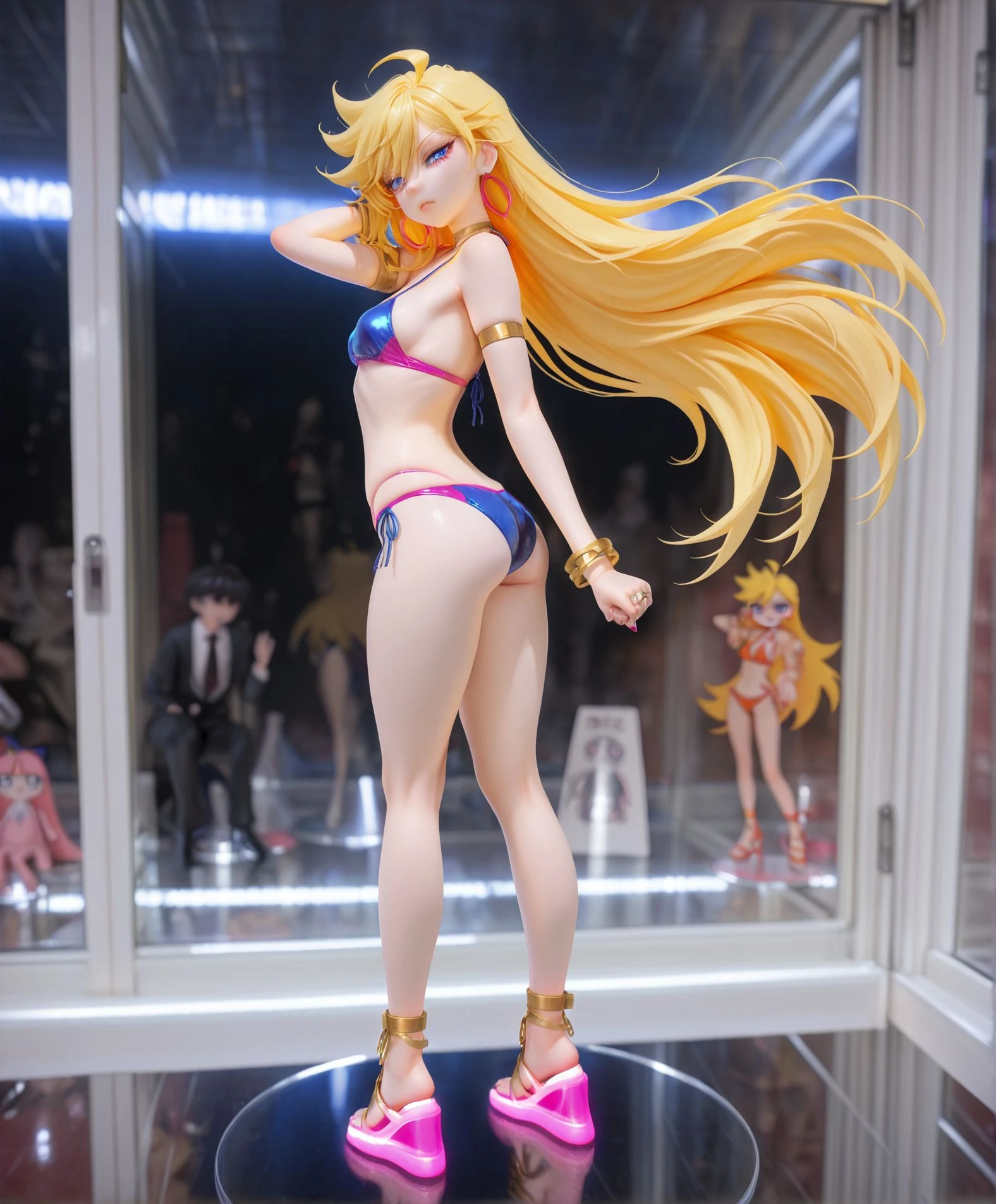 1girl, bikini, collectible showcase, display base,