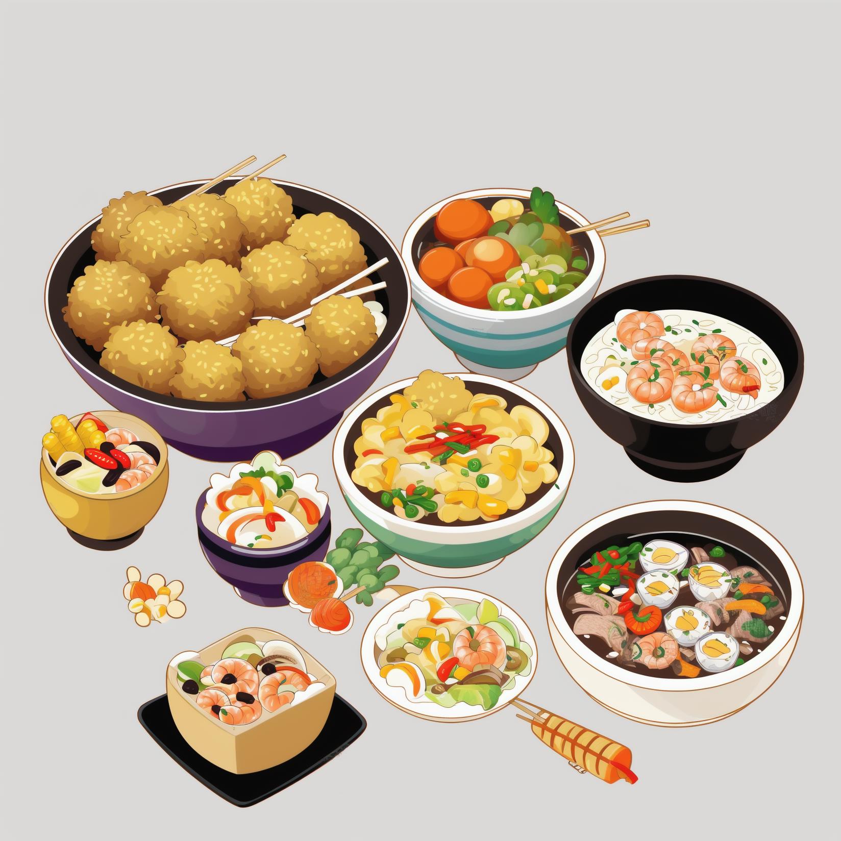 尺寸设定为680x680可随机排列的食物混搭菜肴