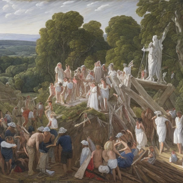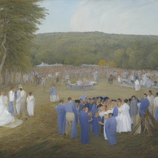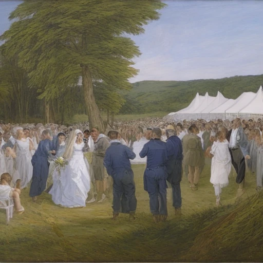 This model was trained on paintings done by CCA Christensen. All the images in the databases were large crowds of people in a pastoral setting. So, that's pretty much all it can generate - paintings of large groups of people in pastoral setting.