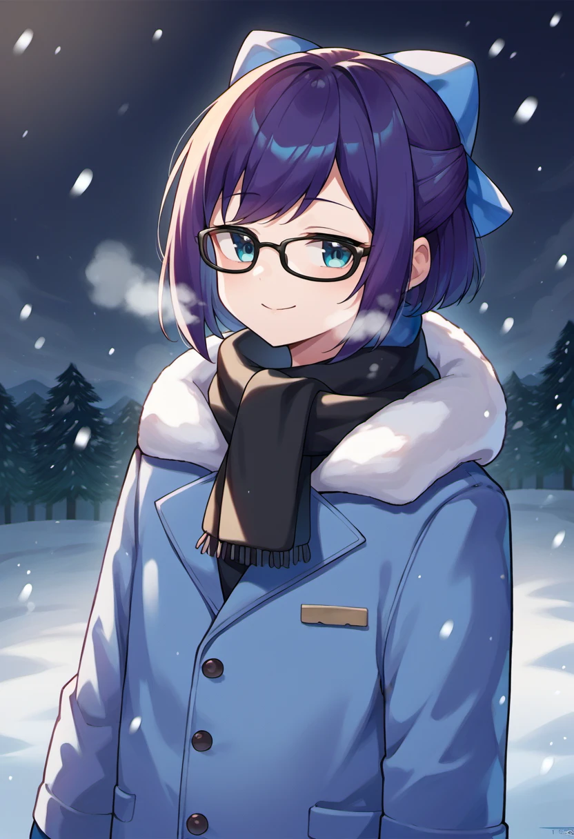 a-chan_misc, black-framed eyewear, blue bow, hair bow