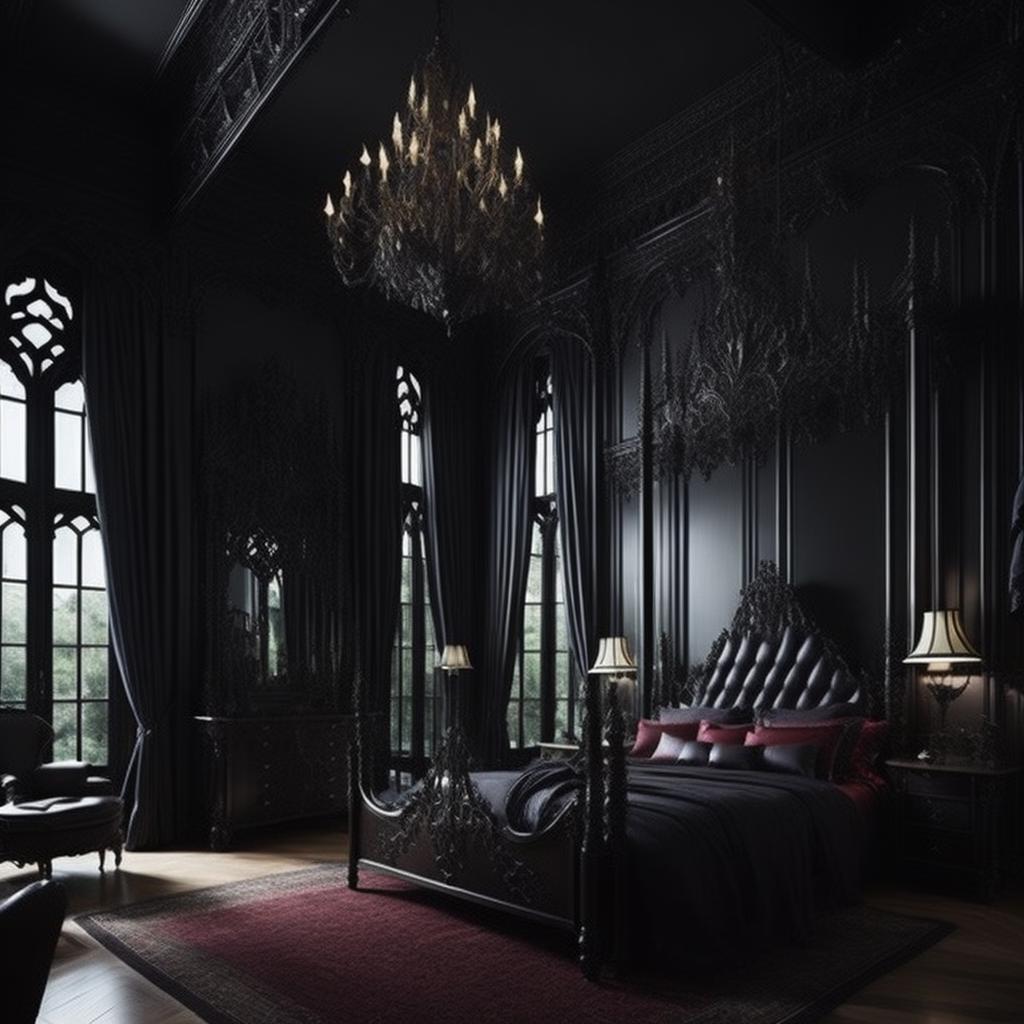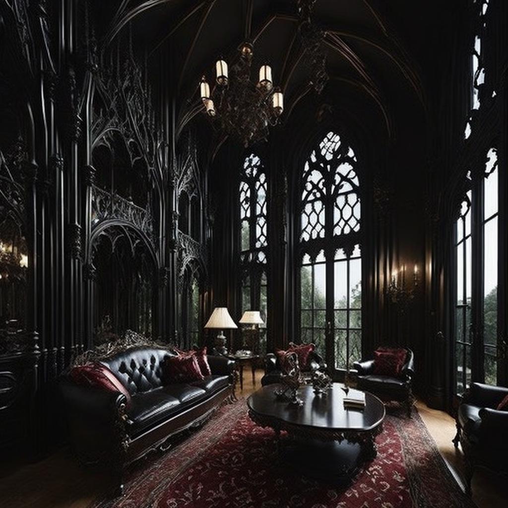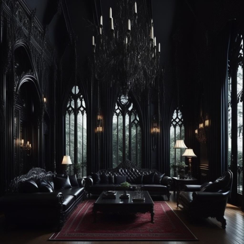 Gothic interior design is characterized by grandeur, mystery, and dramatic intensity. It encompasses dark, rich color palettes, heavy fabrics, ornate furnishings, and architectural elements such as pointed arches and intricate stonework. The gothic style aims to create a profound, spiritual, and somewhat somber atmosphere, reminiscent of medieval times. This style often includes high ceilings, stained glass windows, and wrought iron details, giving a space a sense of historical gravitas and timeless elegance.