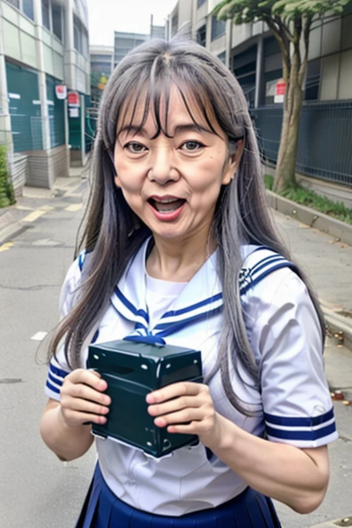 When using 'holding box' in the prompt, it is more effective not to use quality tags. Also, to make the hair white, write 'black hair' in the negative prompt.
