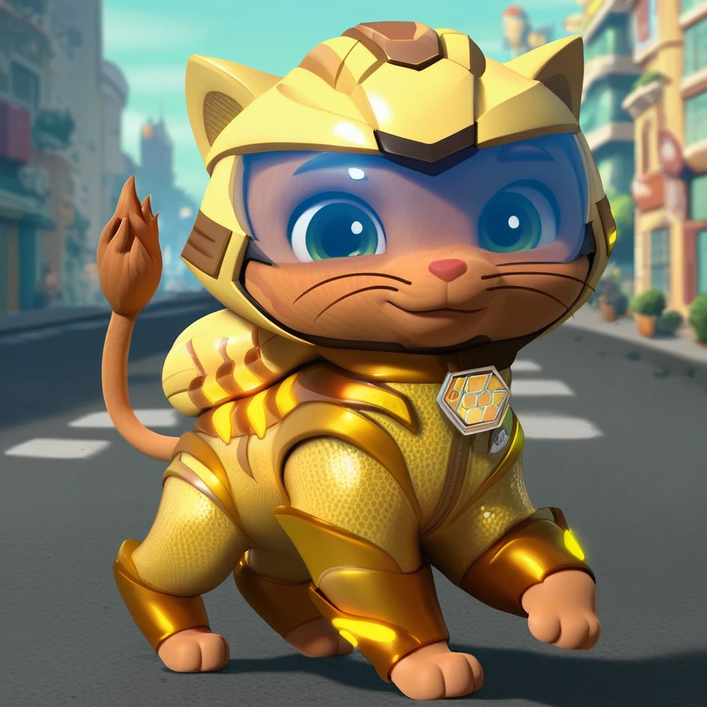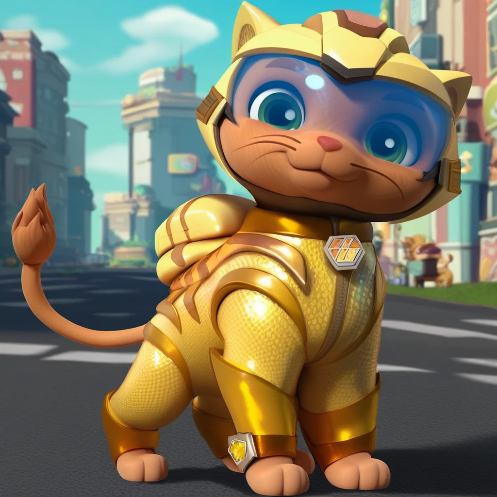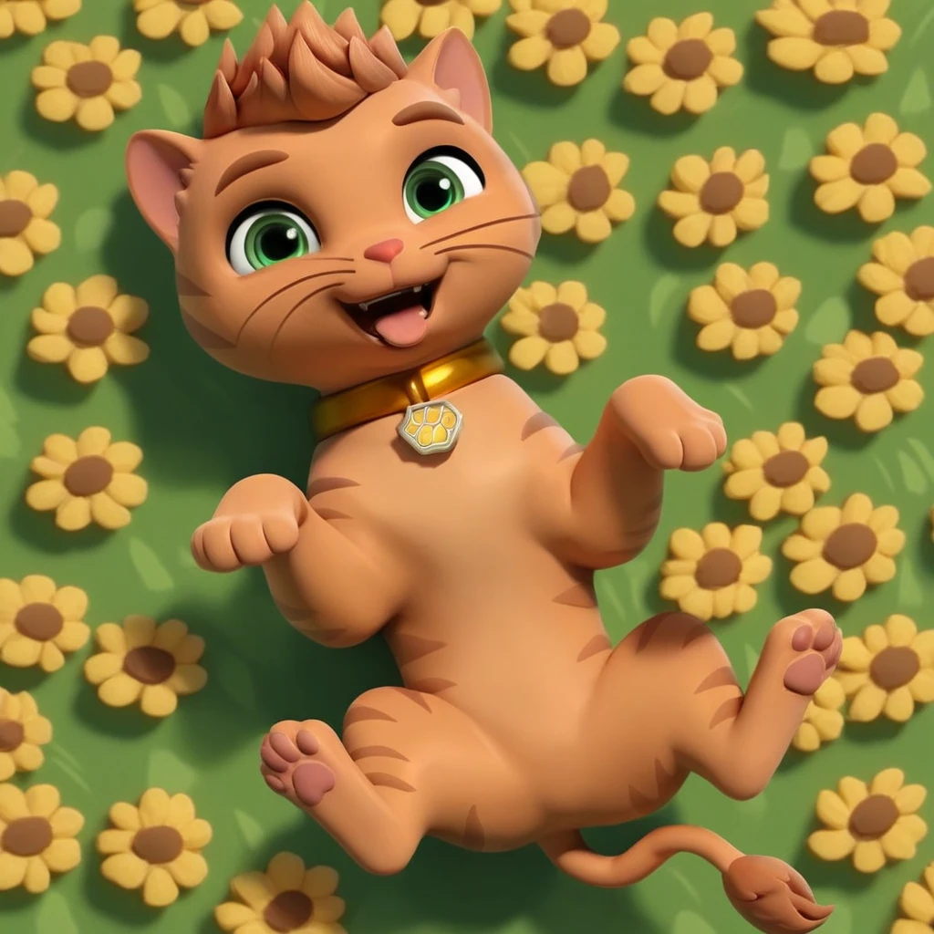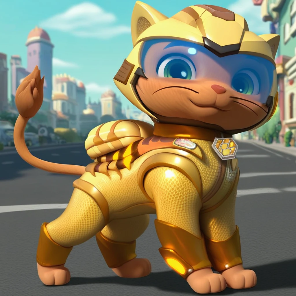 Cat, tabby cat, orange fur, short hair, red nose, lion tail, gold collar, paw print tag,