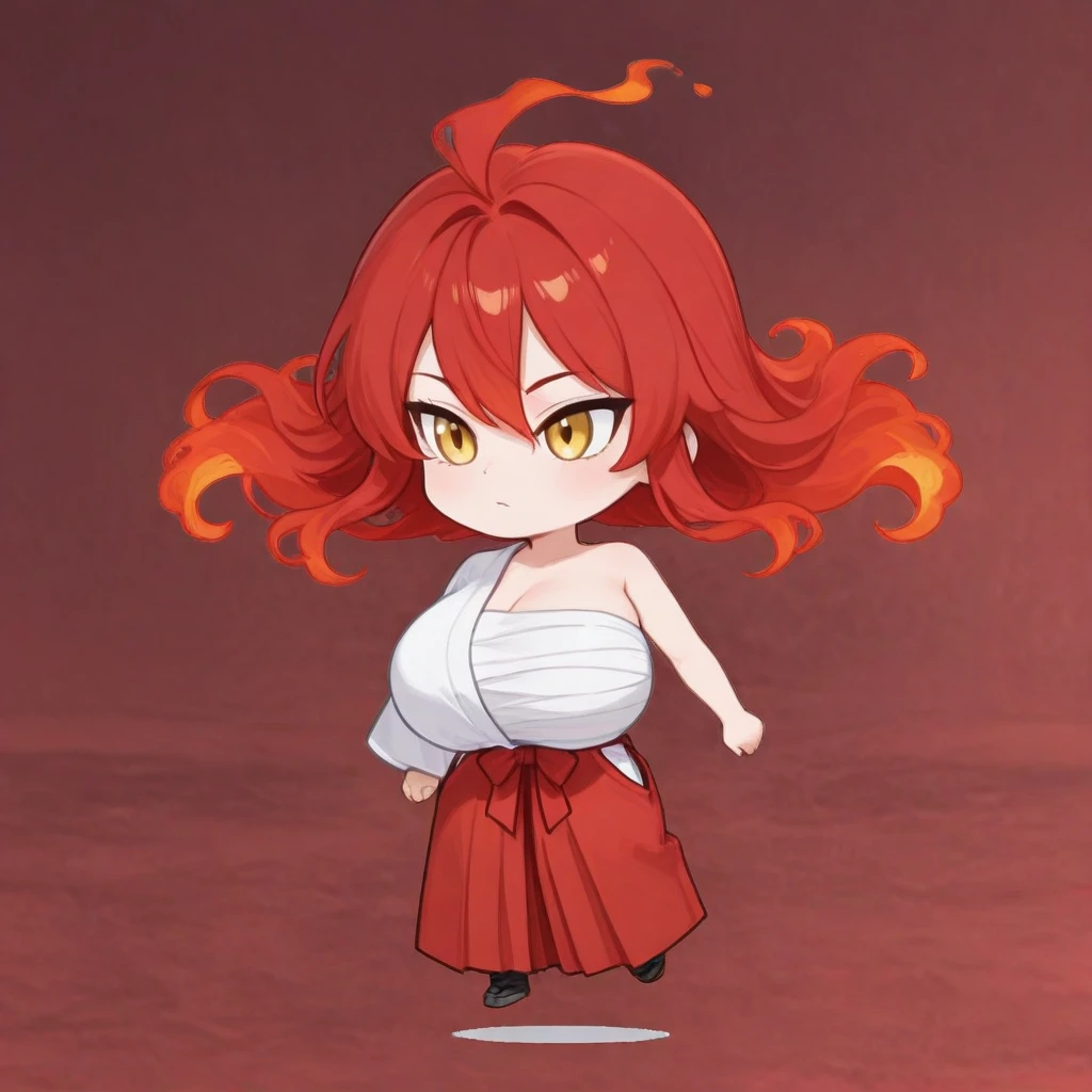 very long hair, floating hair,fiery hair, red hair,yellow eyes,tsurime,