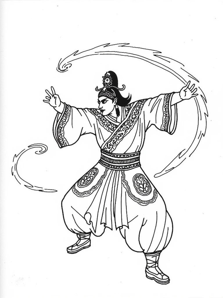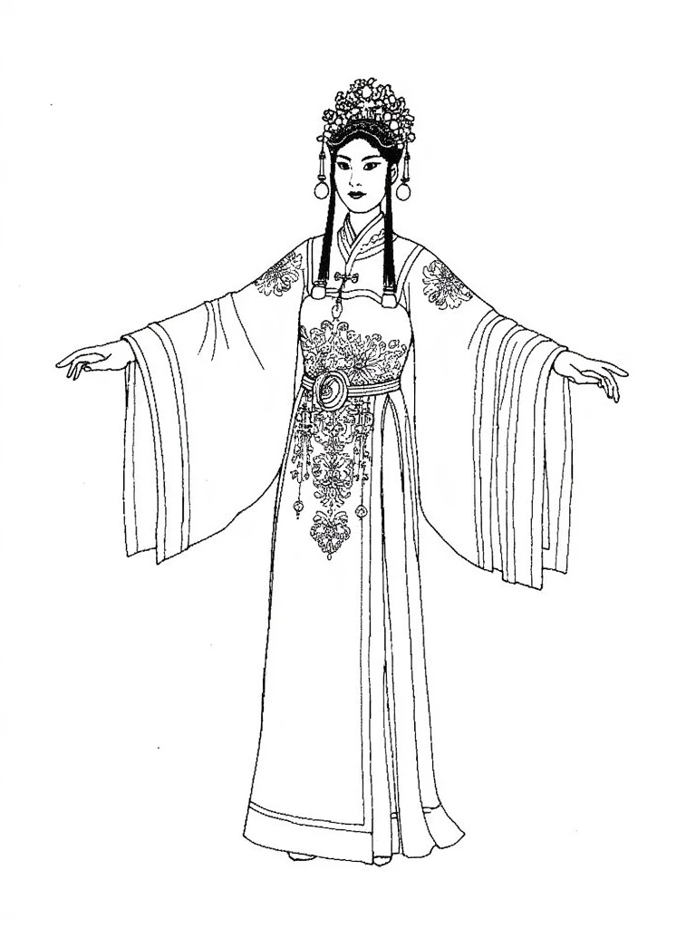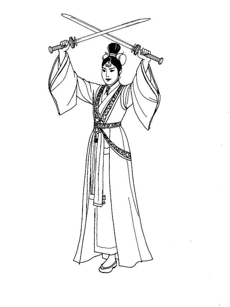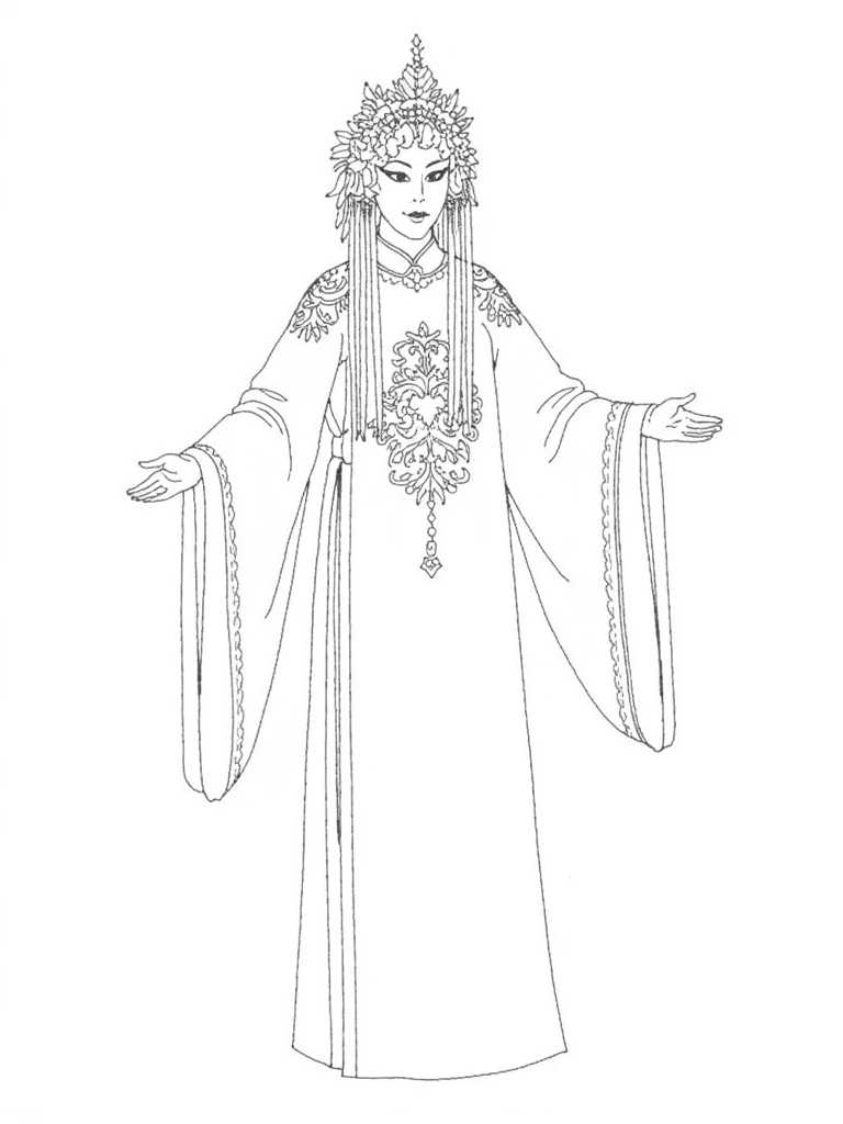 A black and white line art model in the style of a Traditional Chinese theater character.