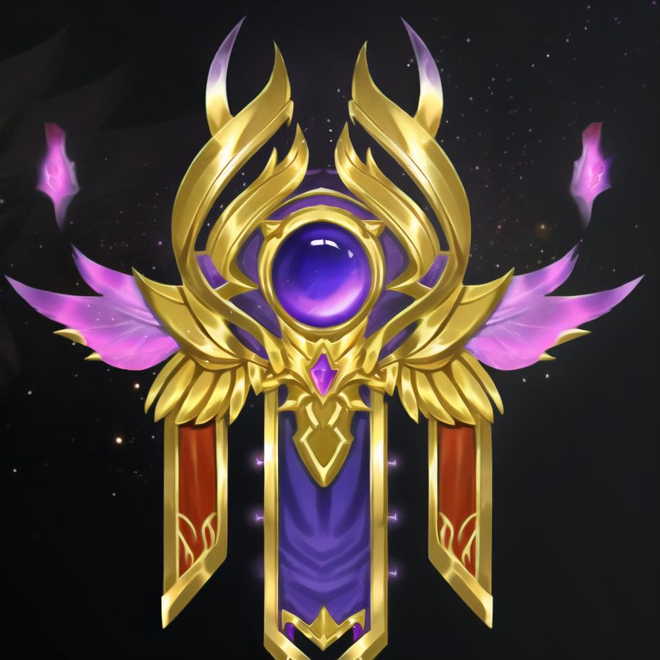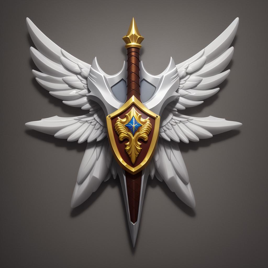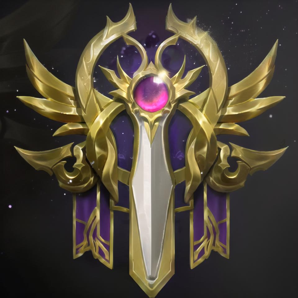 一个可以随机生成游戏徽记的Lora模型,徽记常用元素:翅膀、旗帜