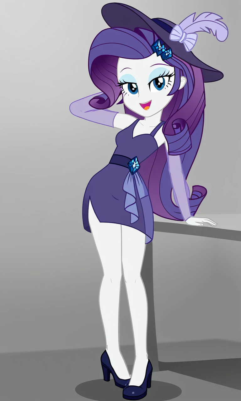 Rarity, Equestria Girls, Detective Rarity, blue high heels, hat with feather, blue dress with sleeves