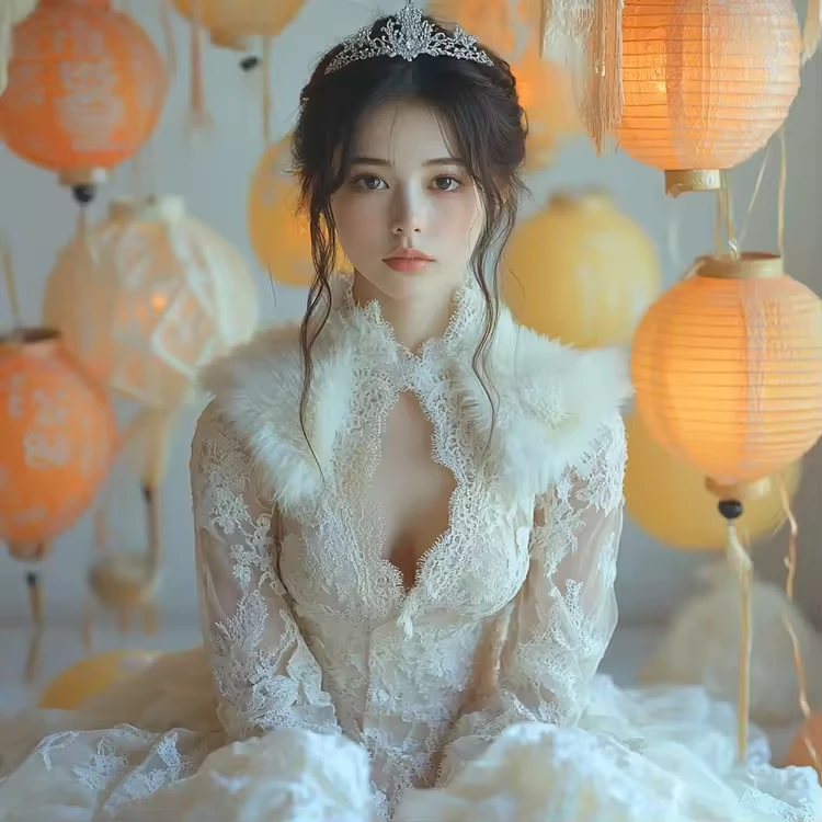 Recommended word: Atmospheric lanterns,A Bride in a Fairy Tale Setting, Surrounded by Paper Lanterns.