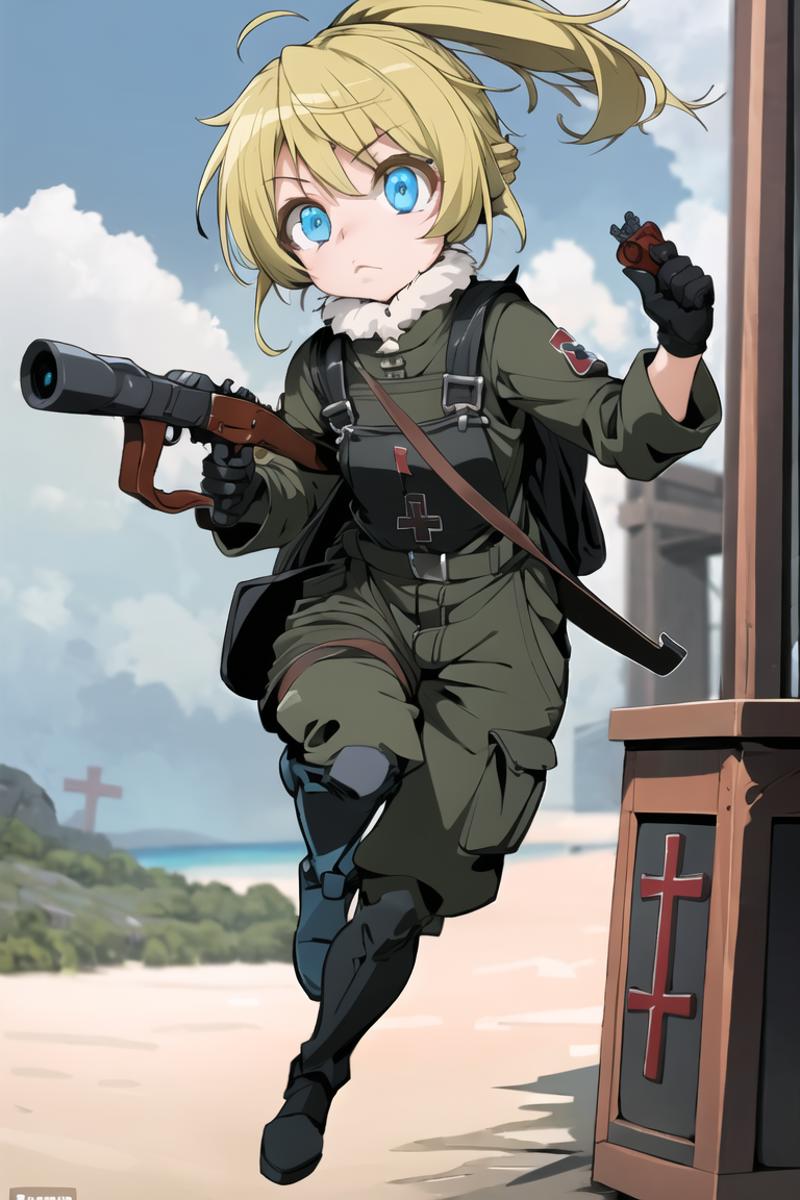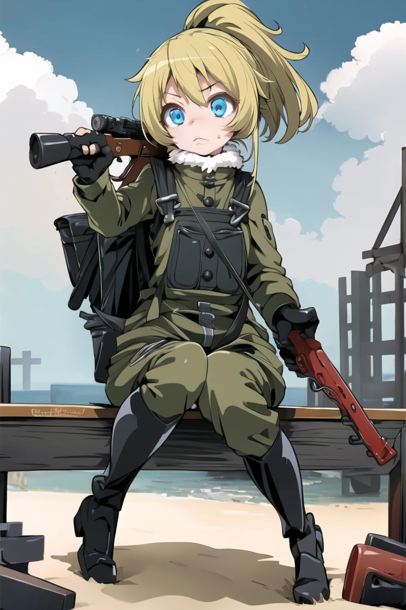 Easy enough to prompt for her uniforms, ill provide the tags below. I also trained her on a unique tag TanyaTheEvil so make sure to use that.