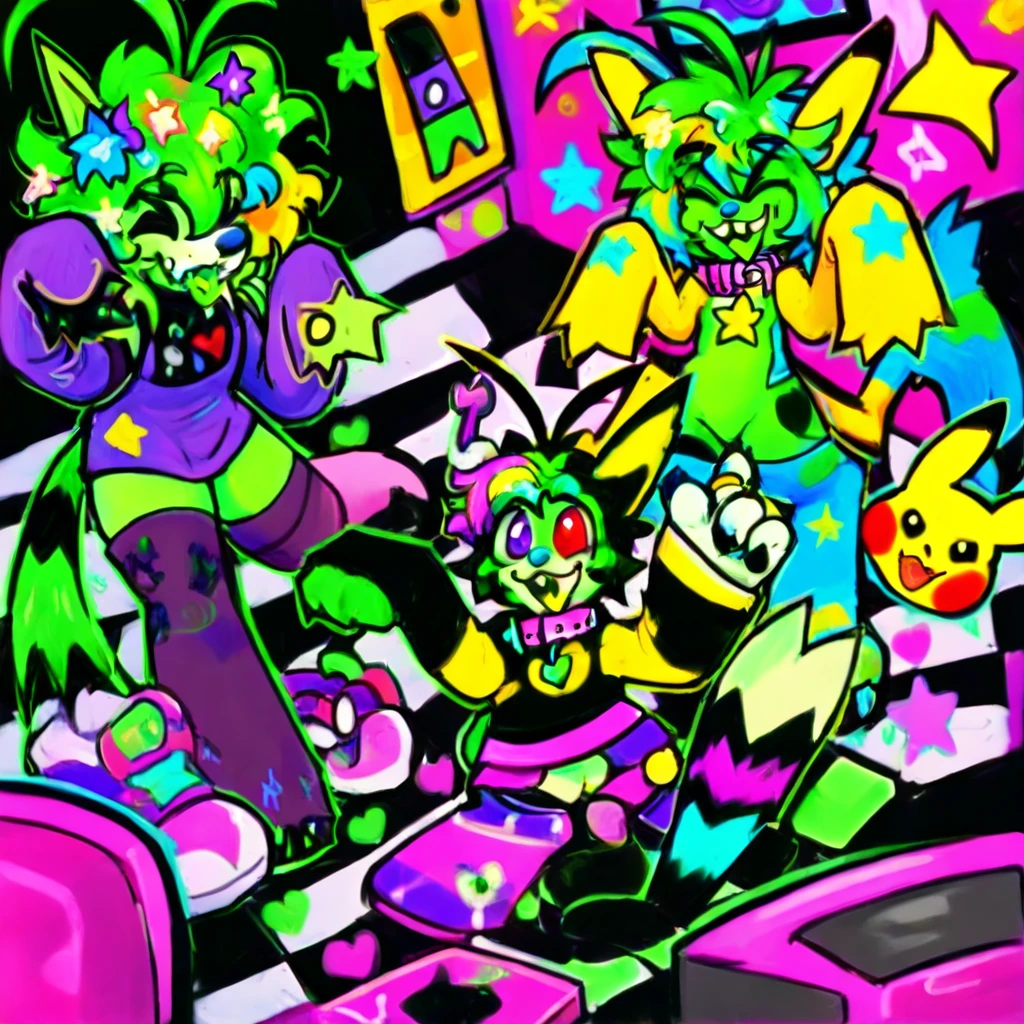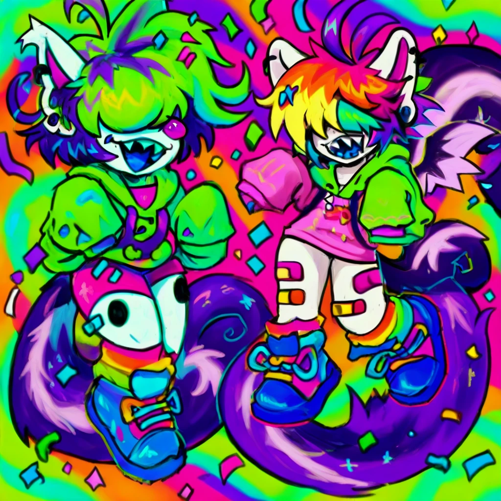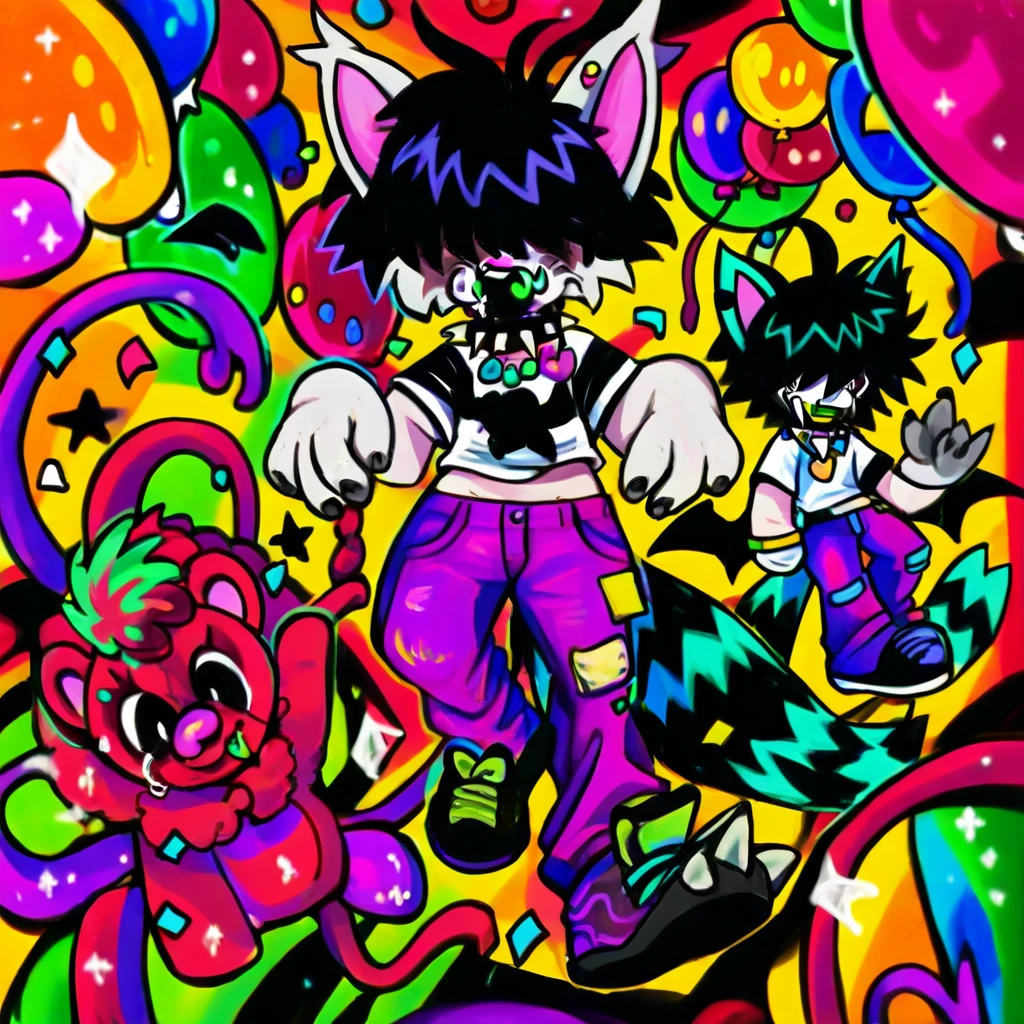 scenecore style, anthro specialized, lots of fun hyperpop colors and emo scene aesthetic