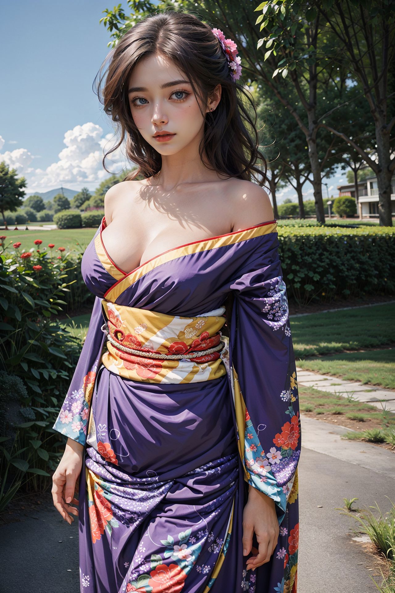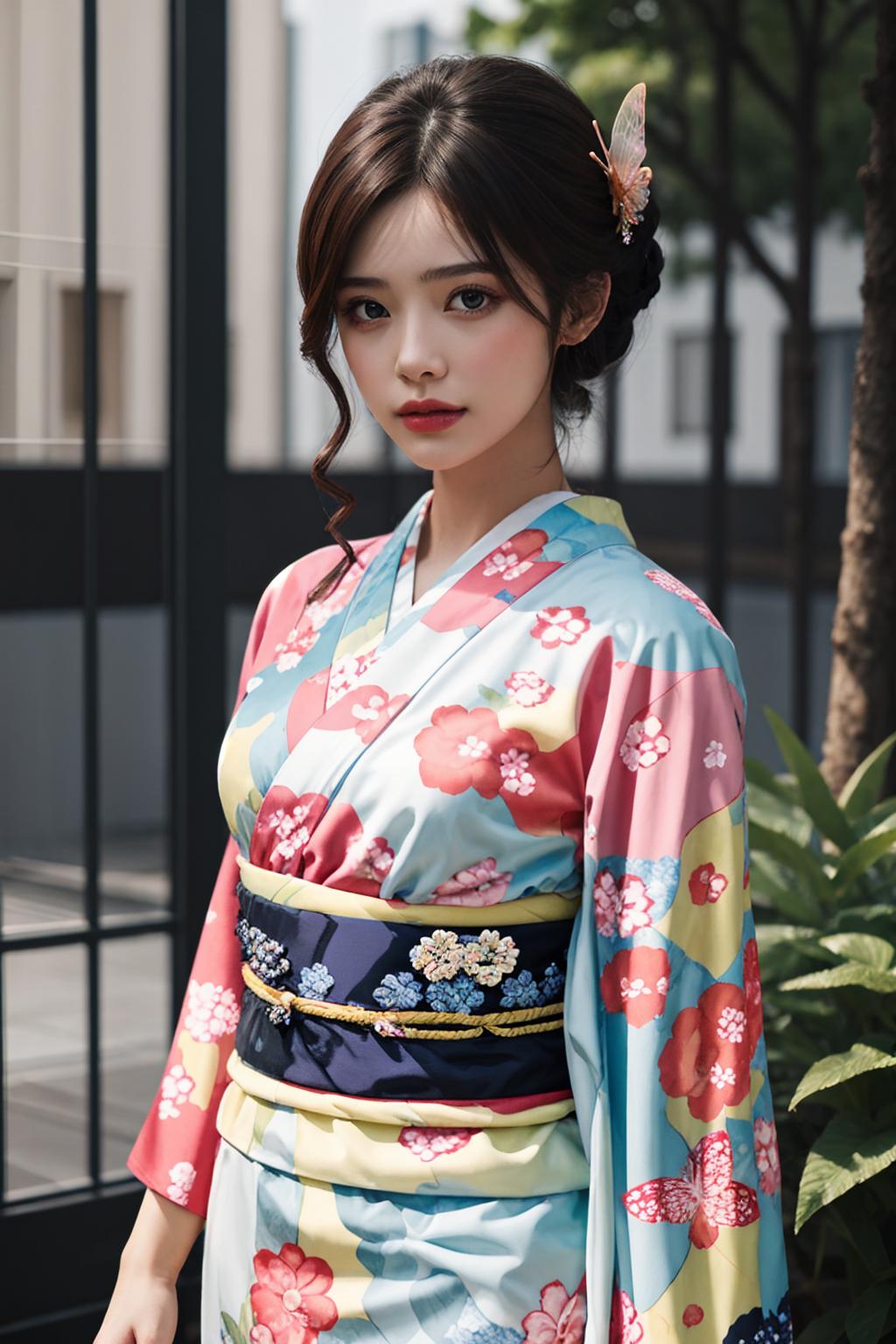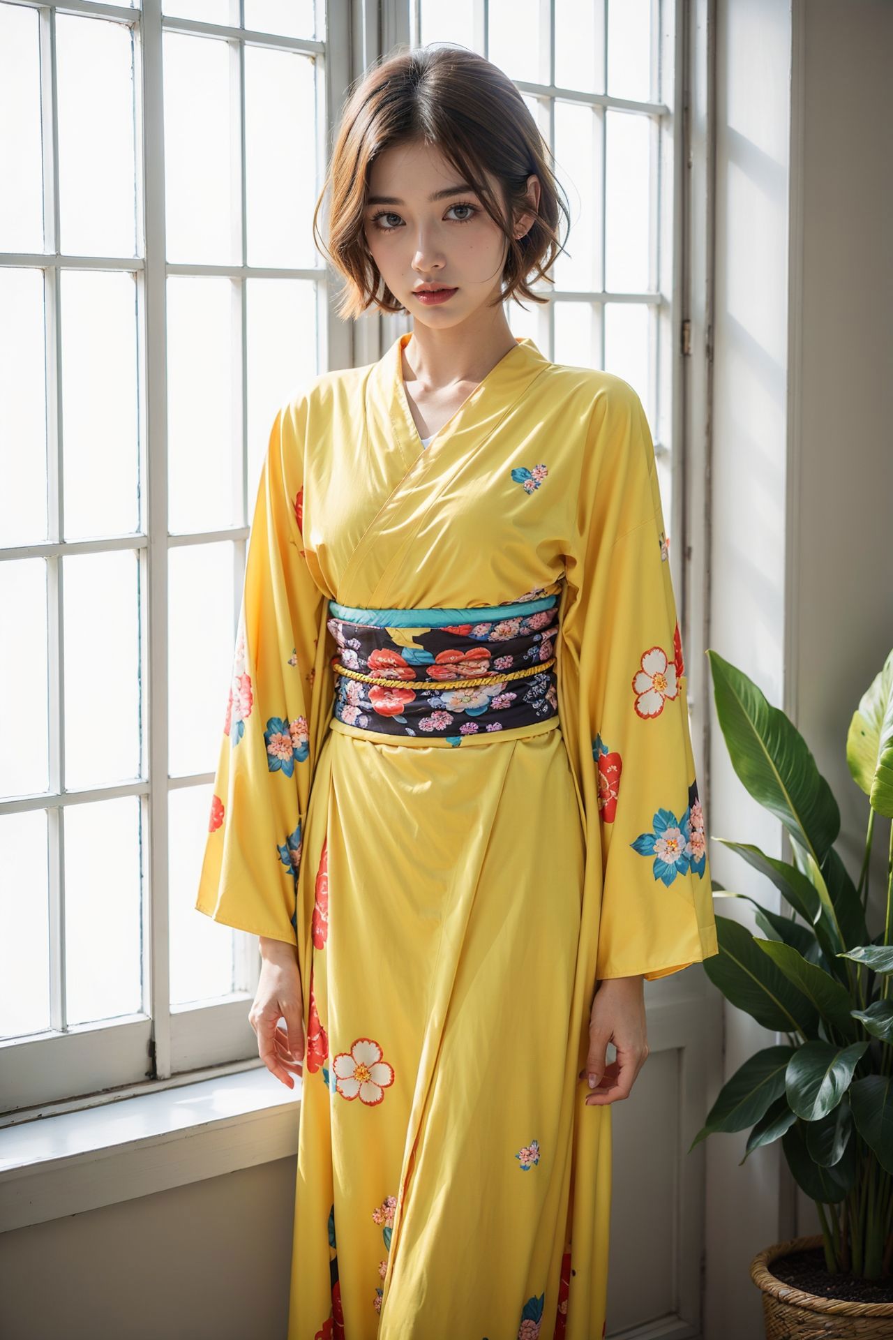 触发词: (yellow/blue/green/white/black/red/pink kimono), (japanese clothes), (floral print), (long sleeves)