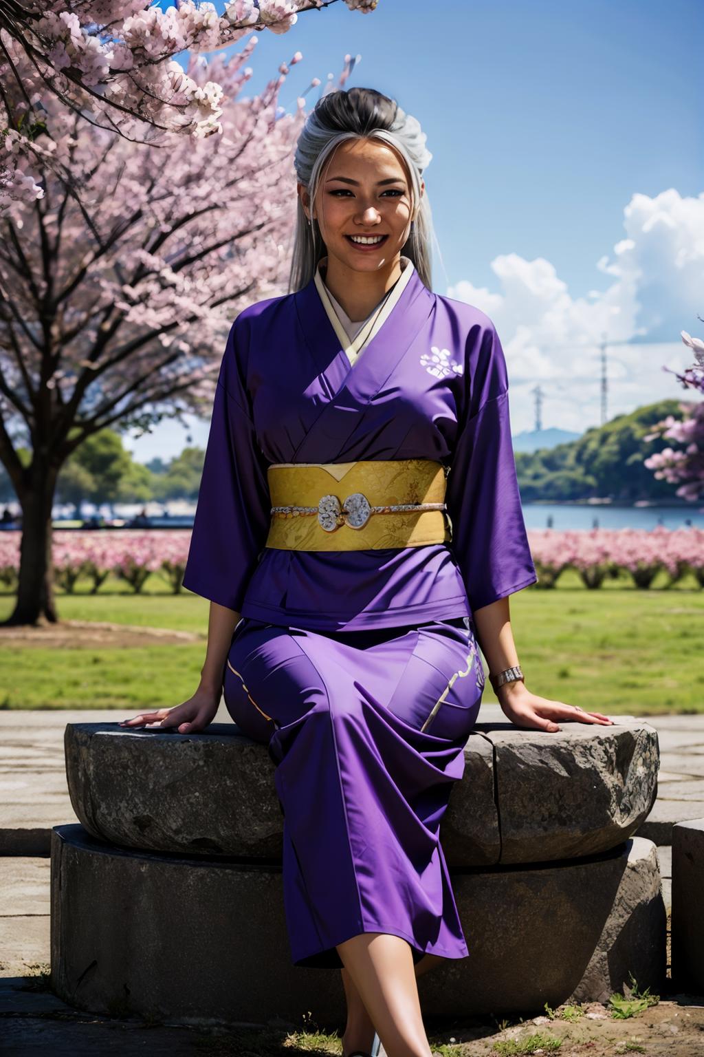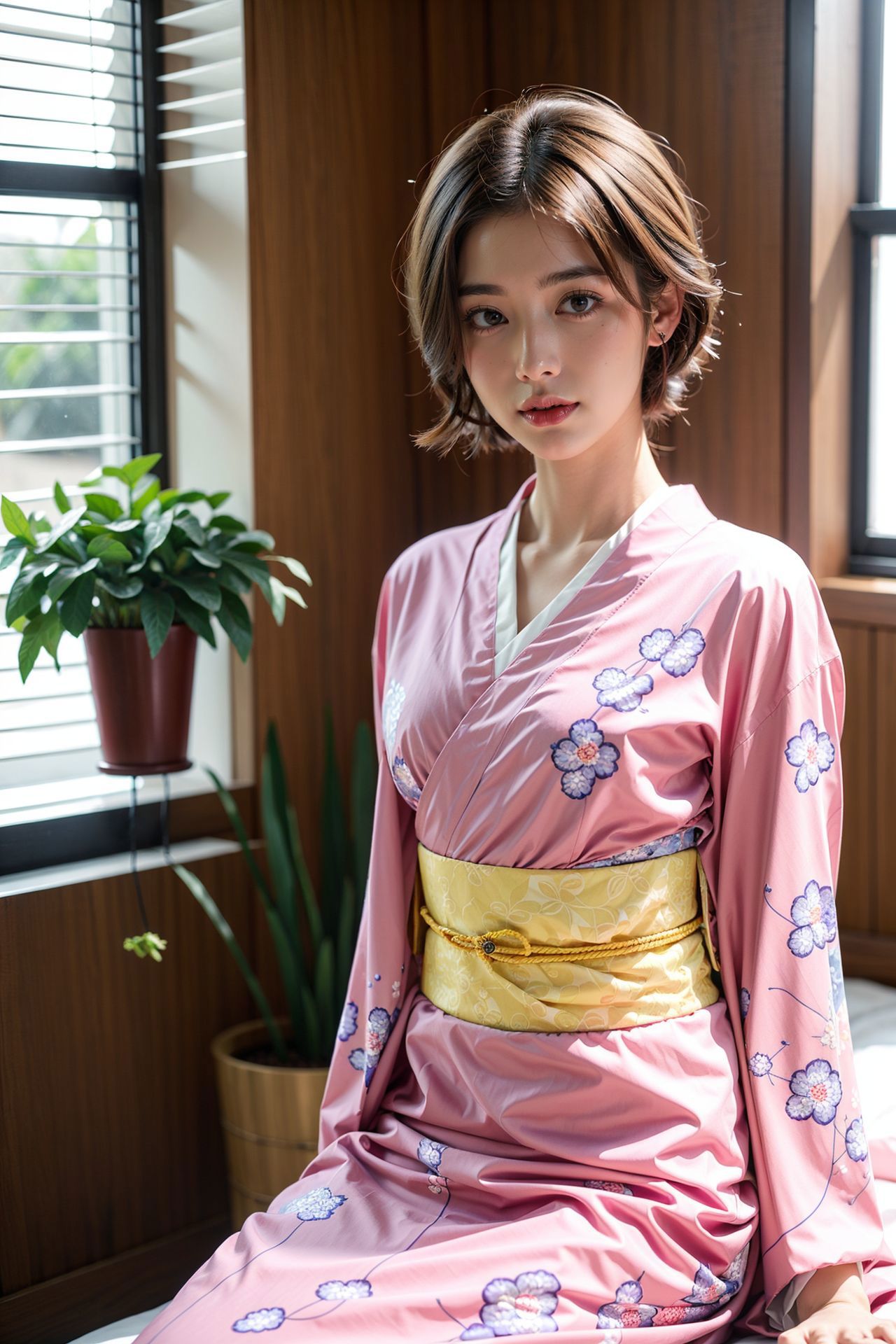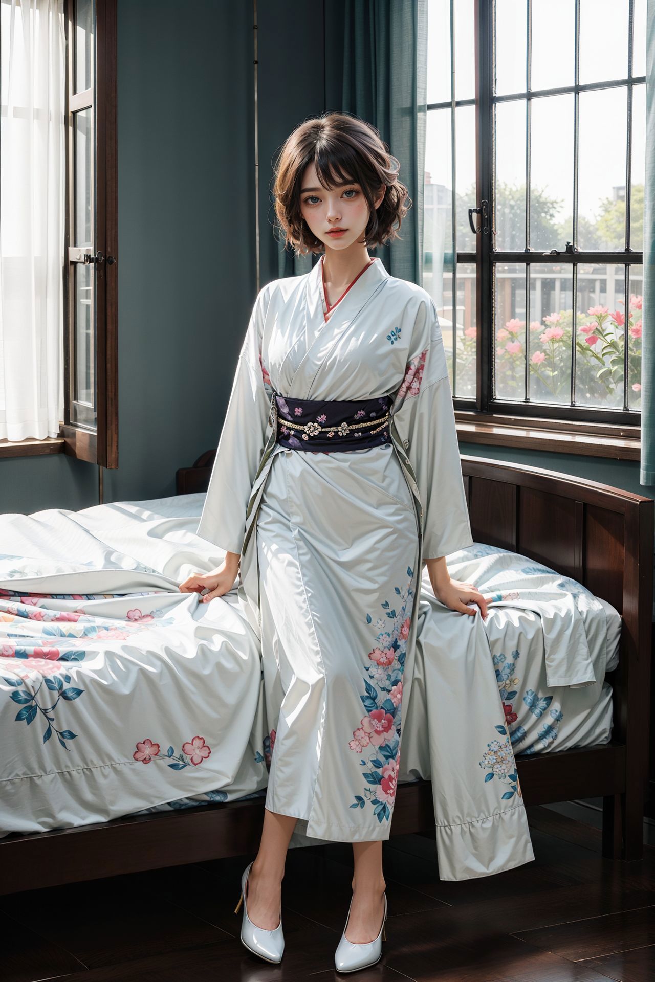 触发词: (yellow/blue/green/white/black/red/pink kimono), (japanese clothes), (floral print), (long sleeves)