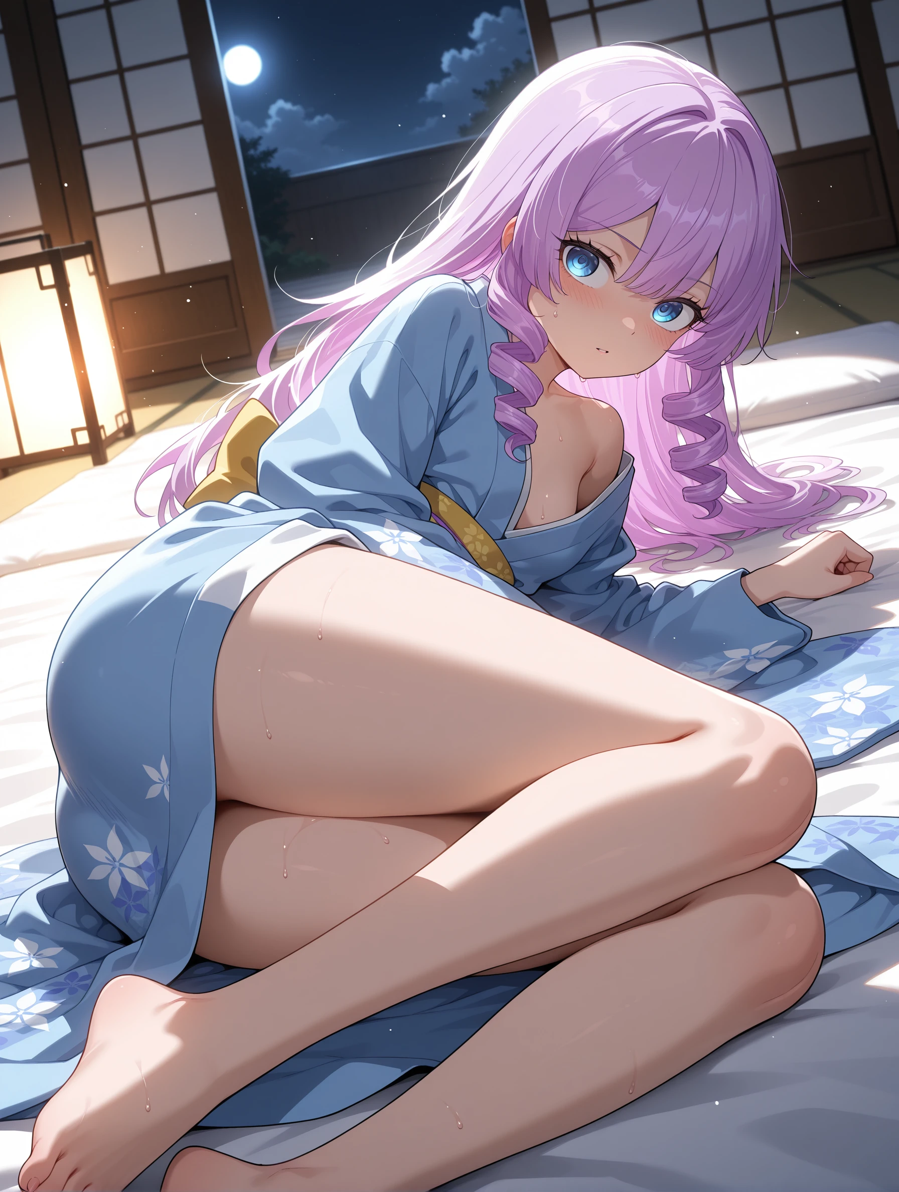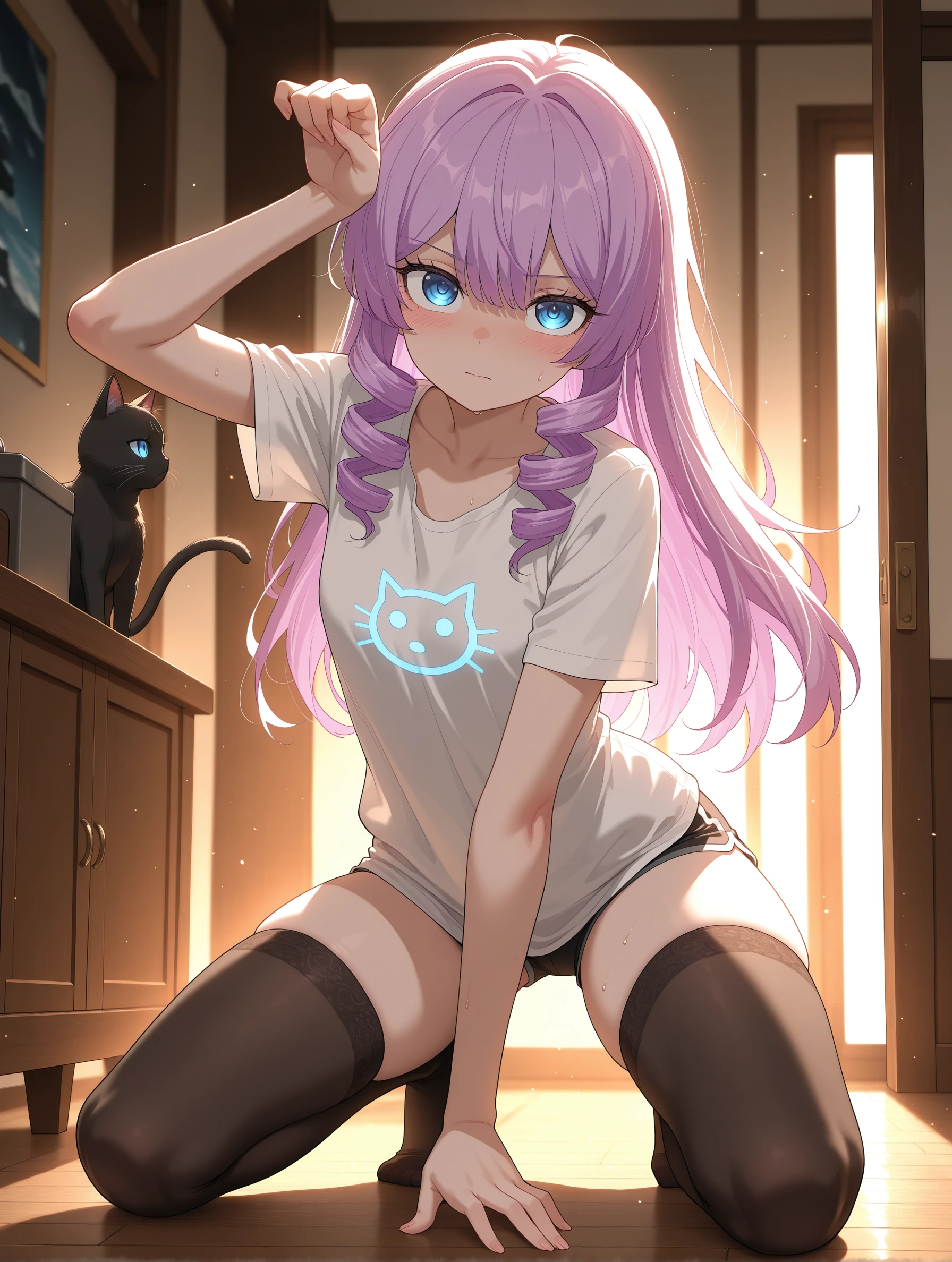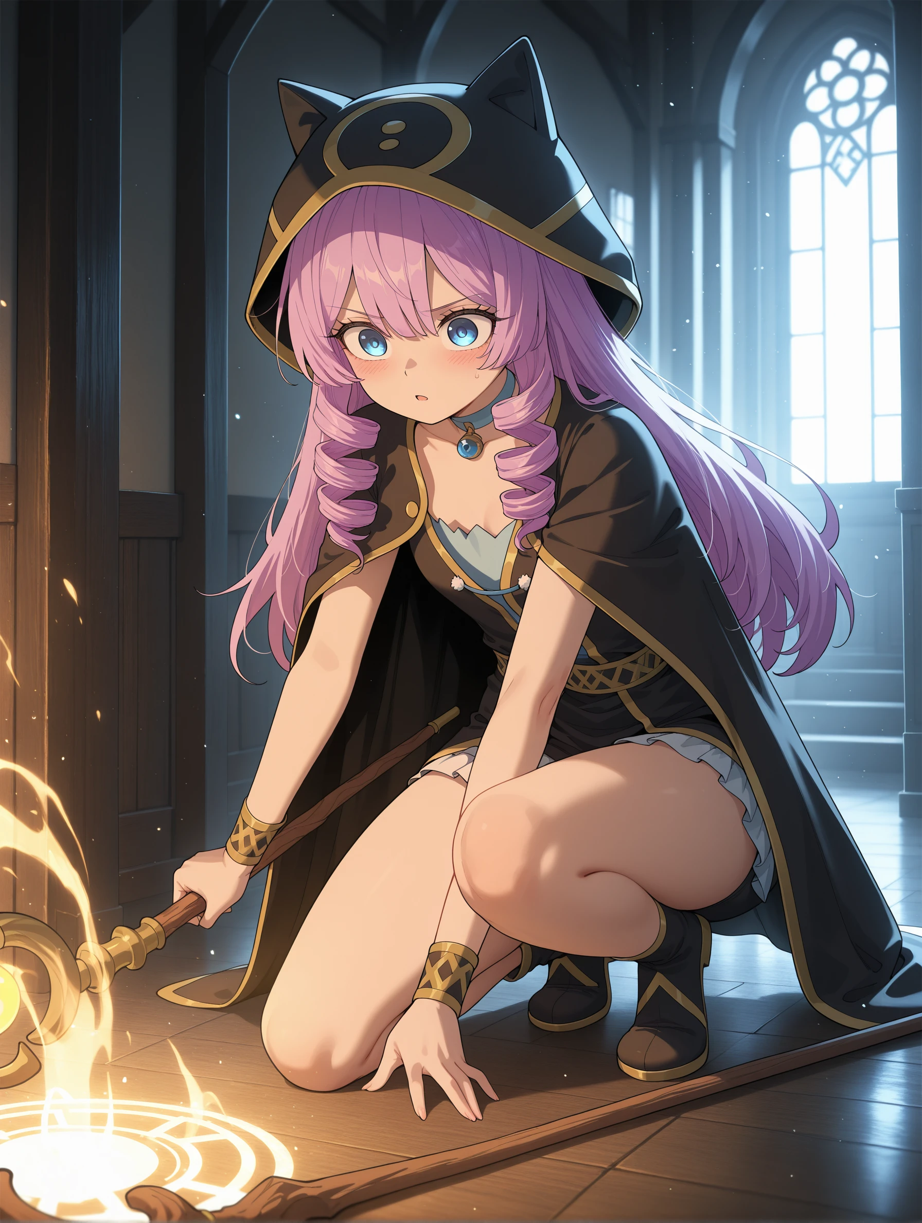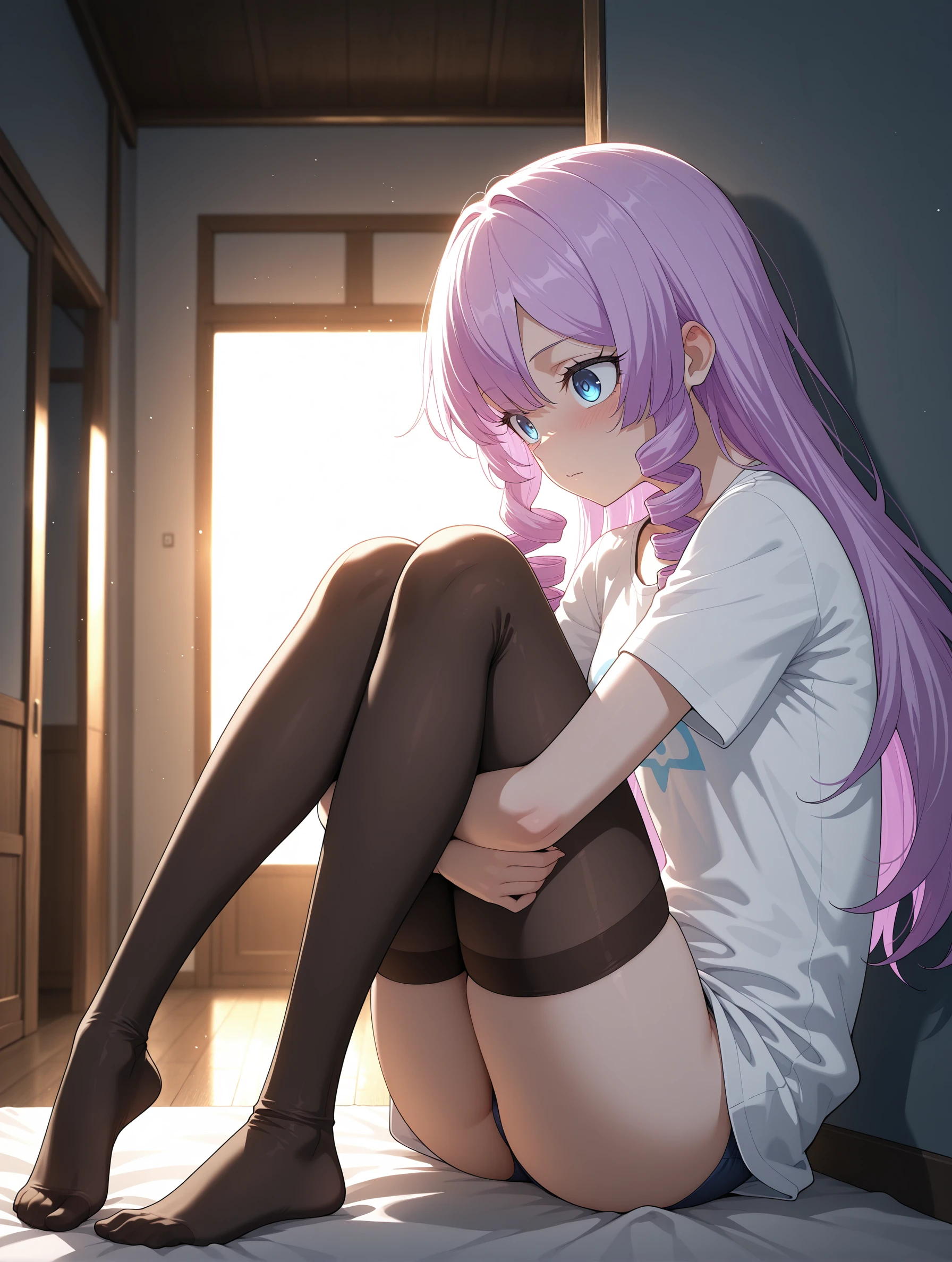 goddess_of_magic,purple hair,drill hair,blue eyes,long hair,petite,
