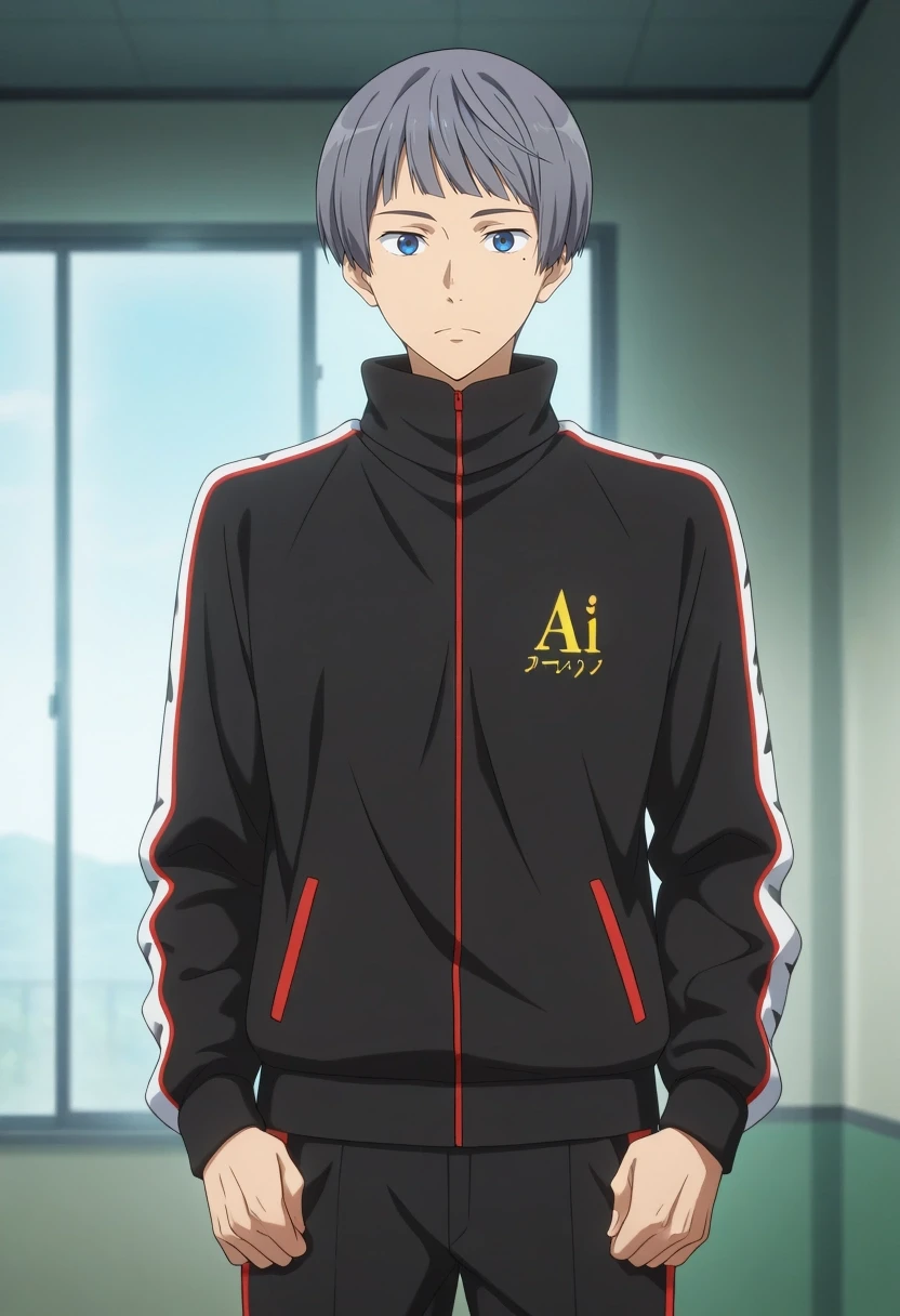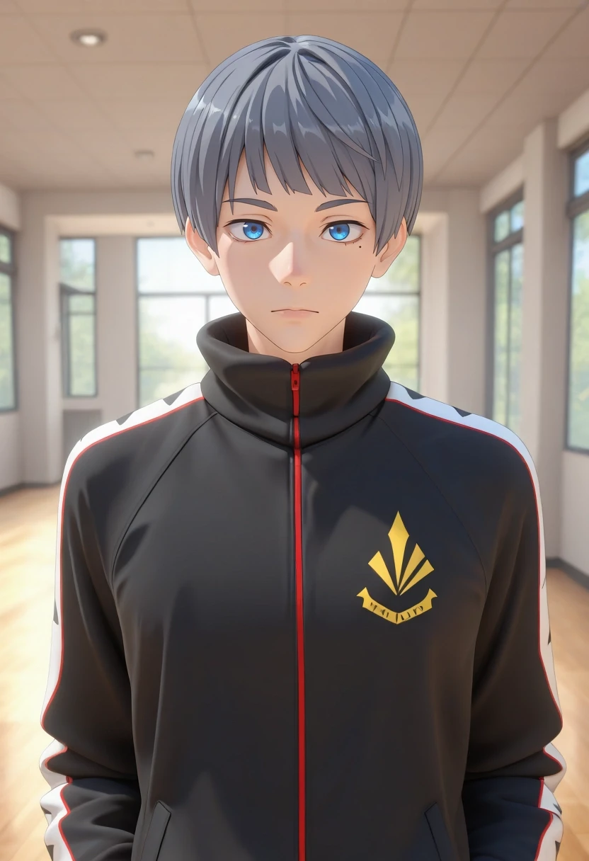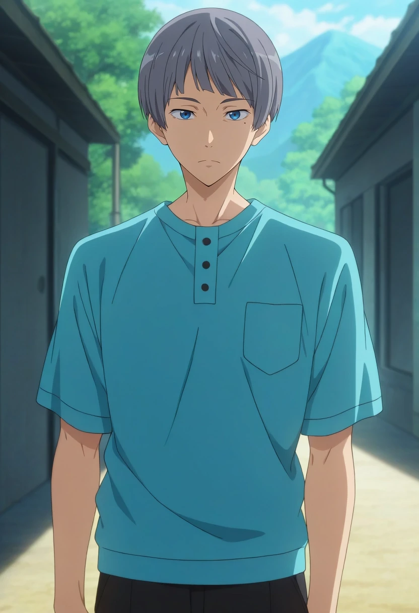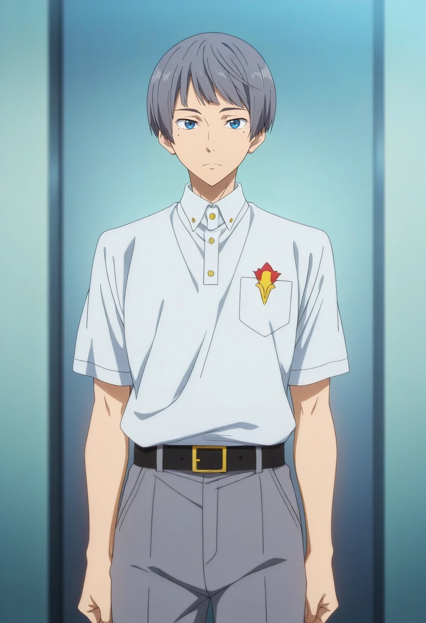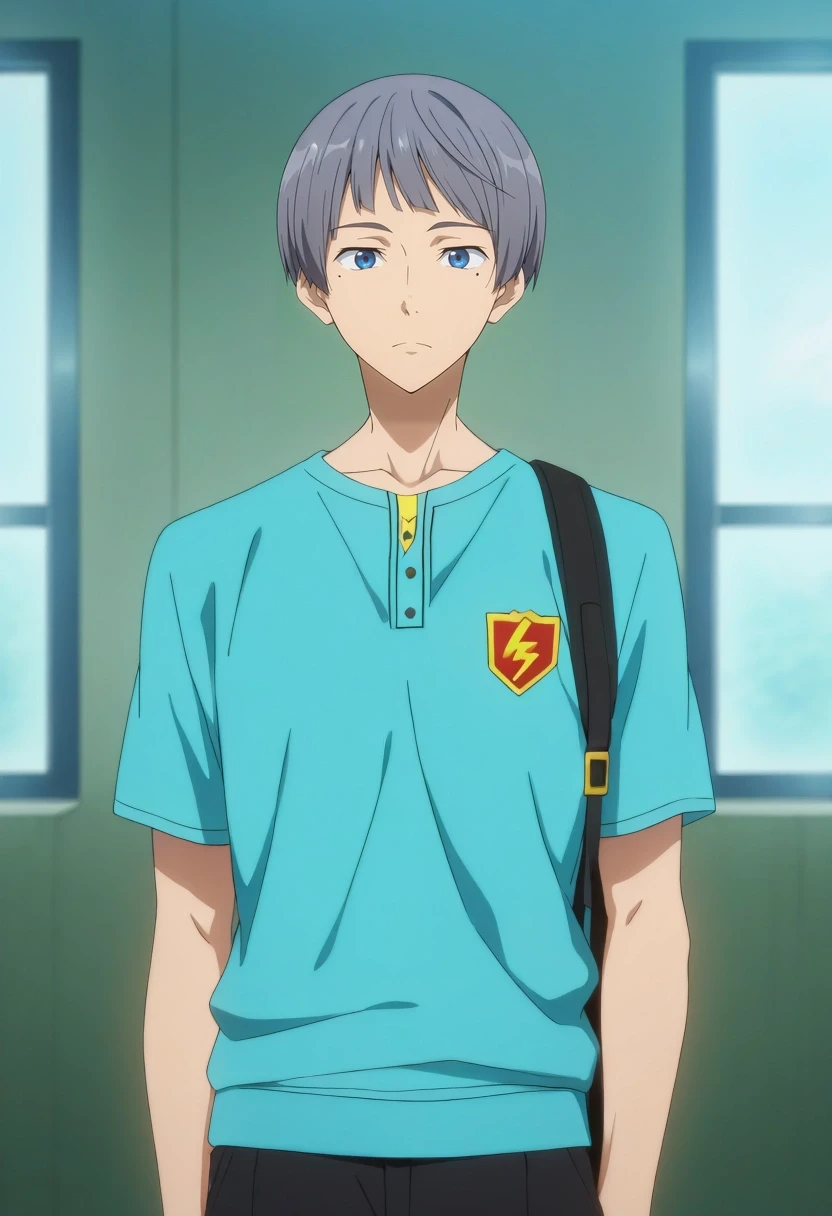 aiichirou_nitori, grey hair, blue eyes, mole under eye