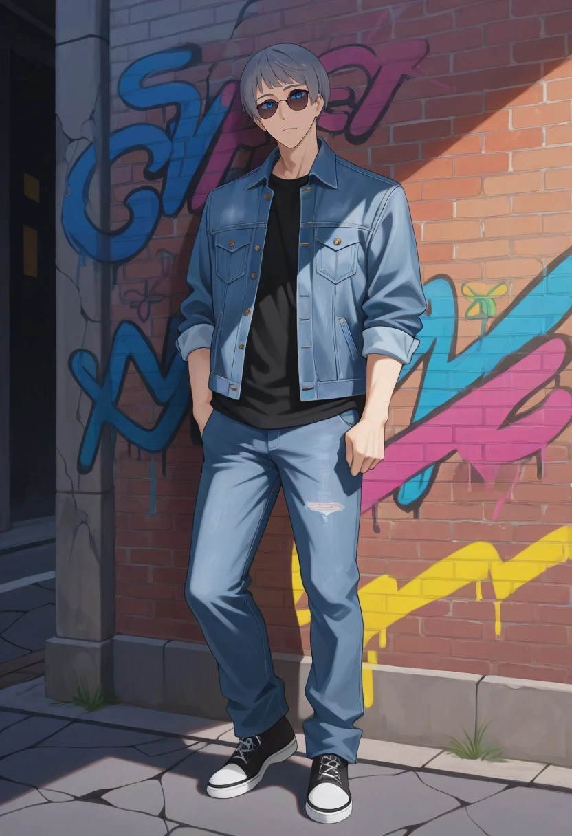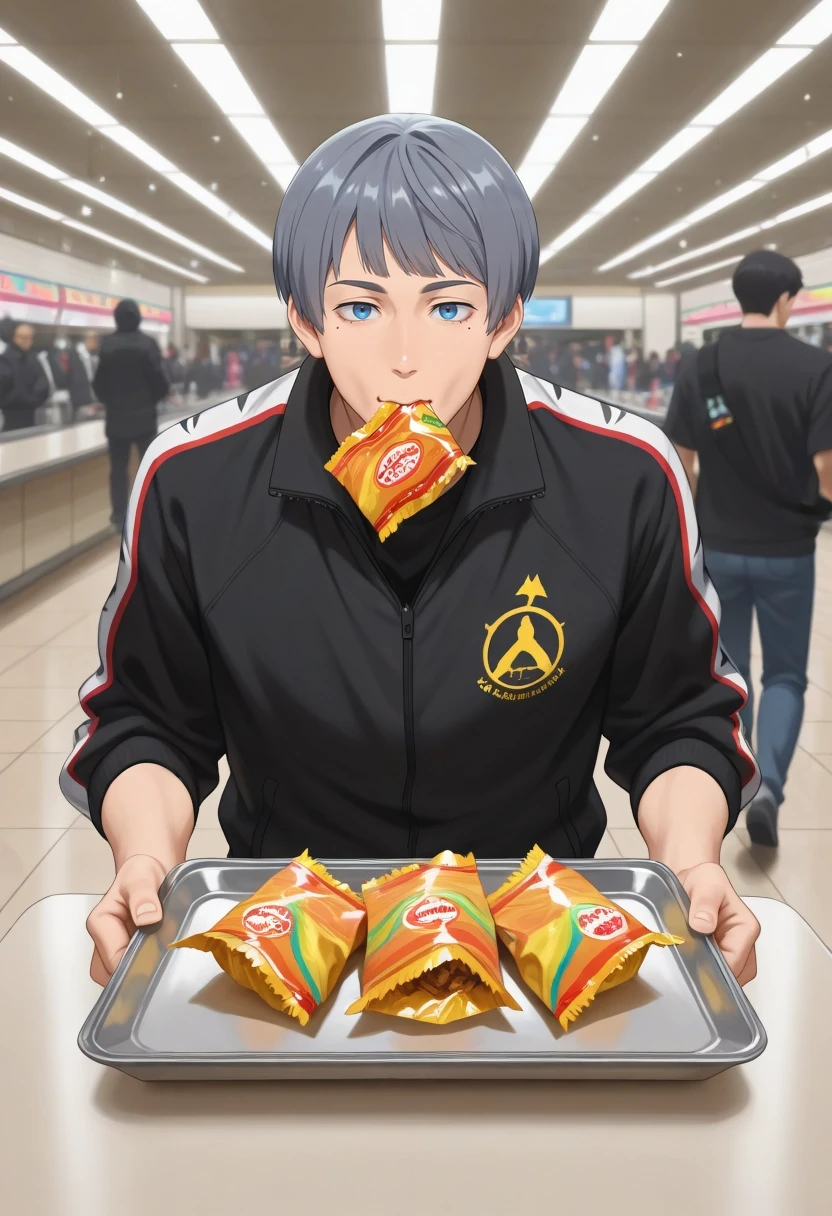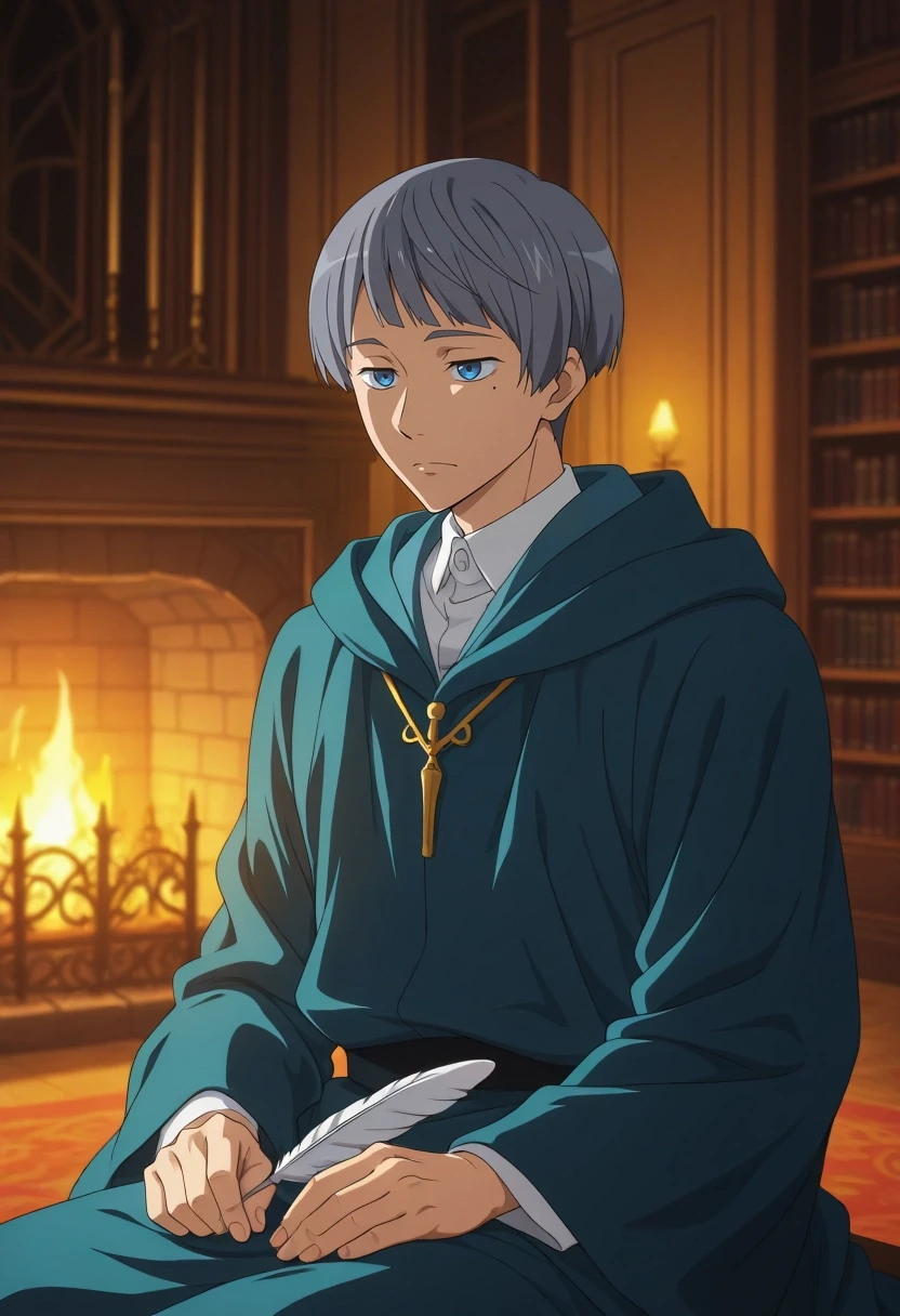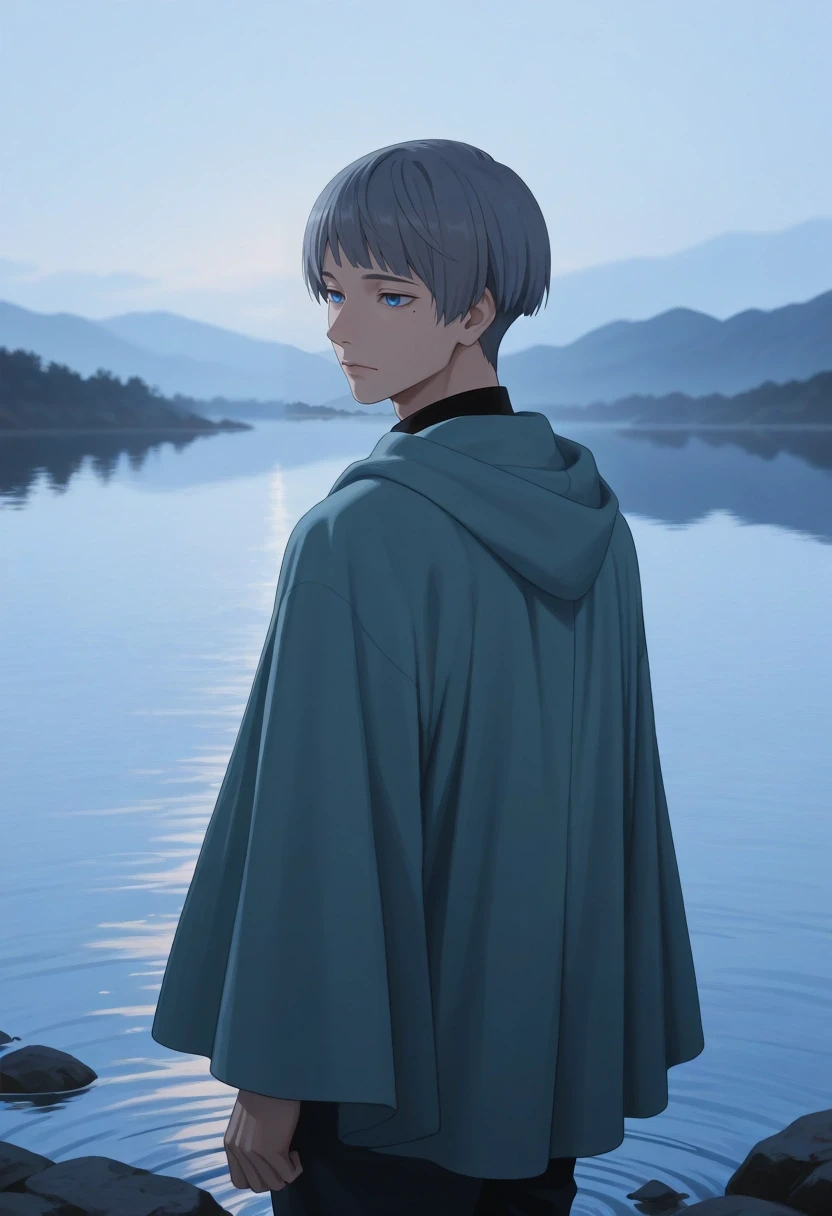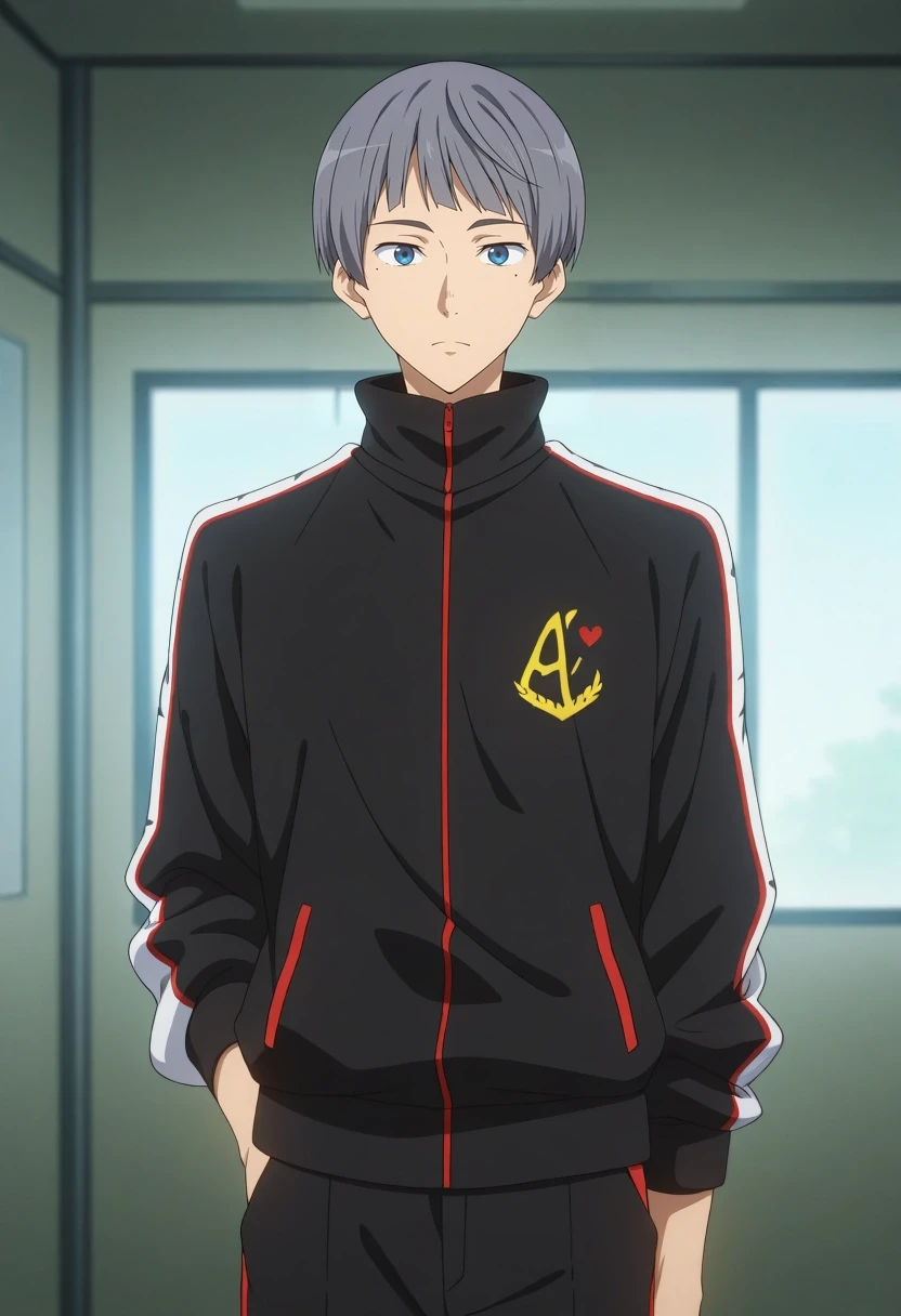 aiichirou_nitori, grey hair, blue eyes, mole under eye