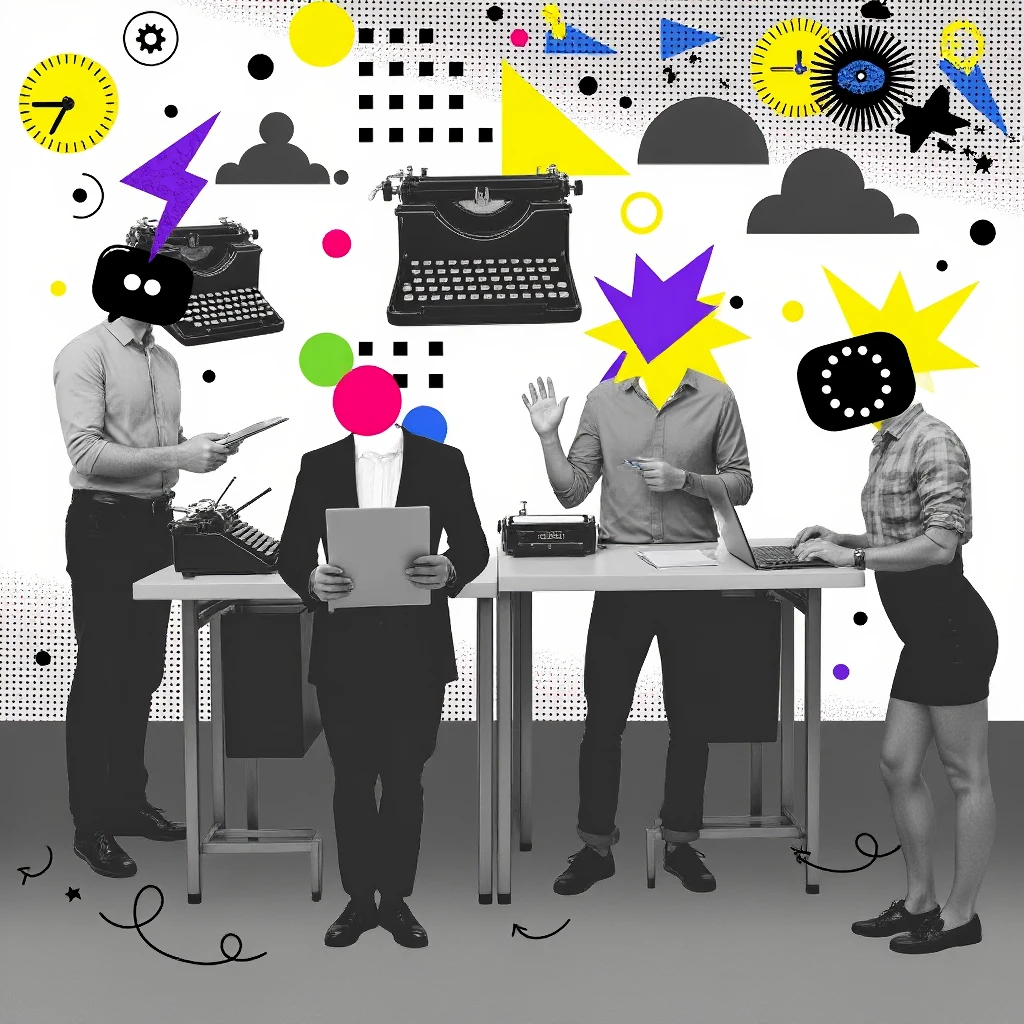 Layered Descriptions: To fully leverage the collage style, describe multiple layers and elements in your scene. For example, “A chaotic creative workspace, contemporary collage art style, with scattered art supplies, floating doodles, and magazine cutouts of famous paintings.”