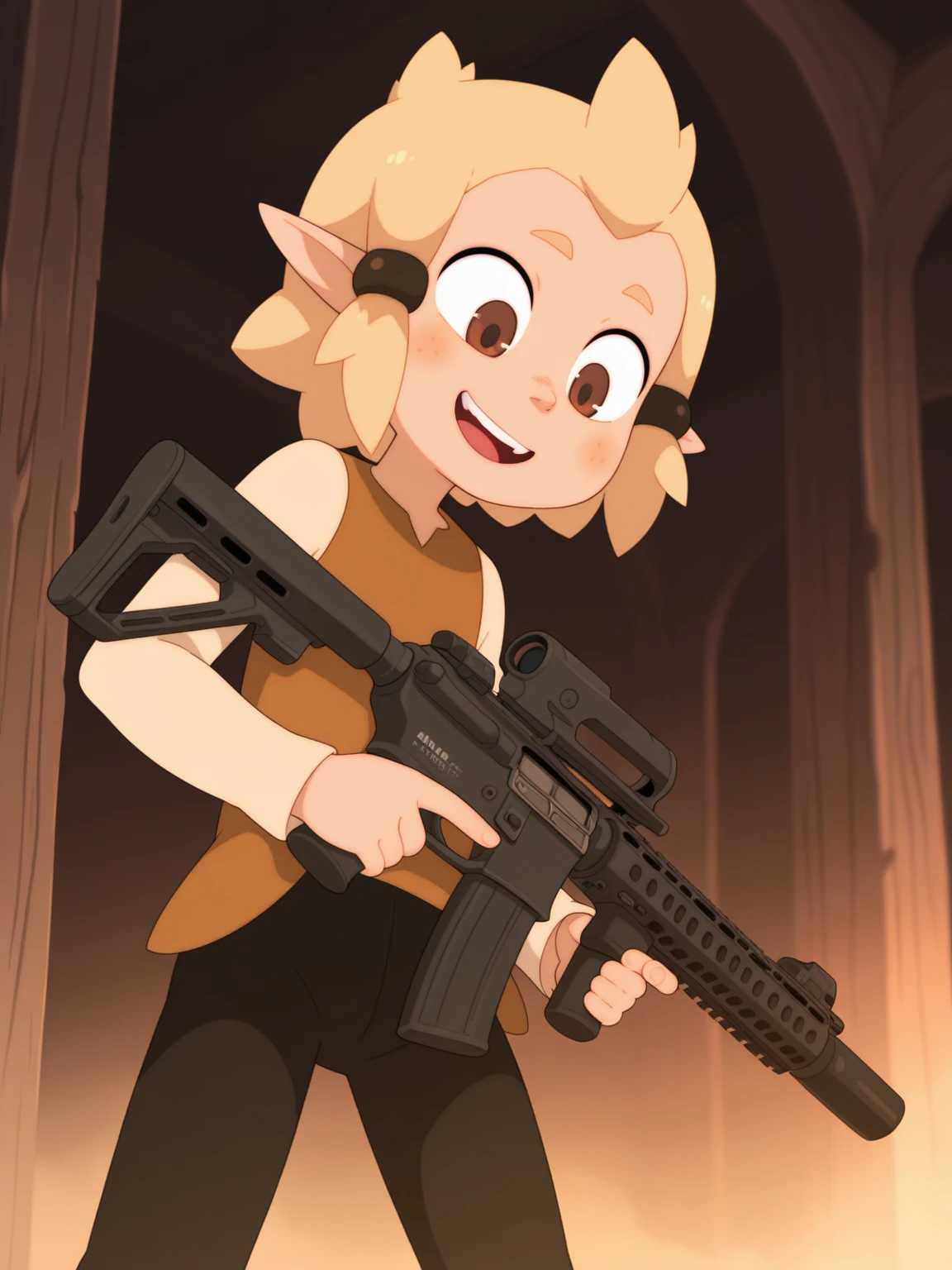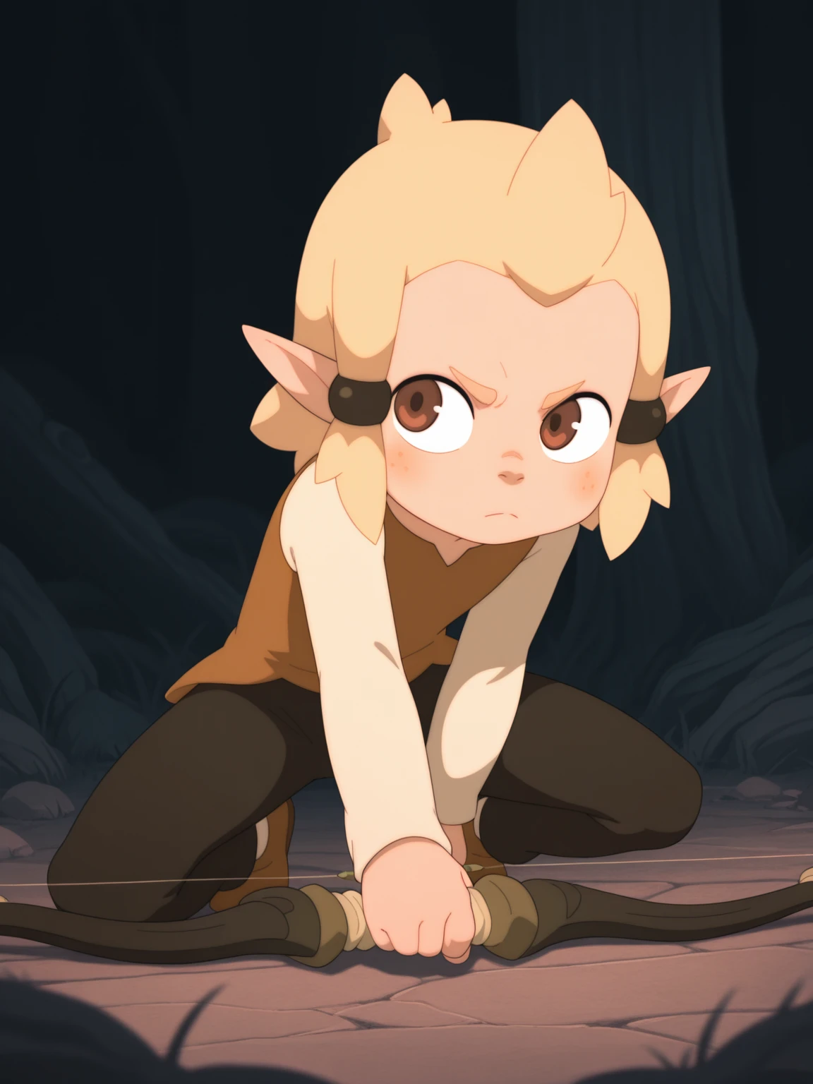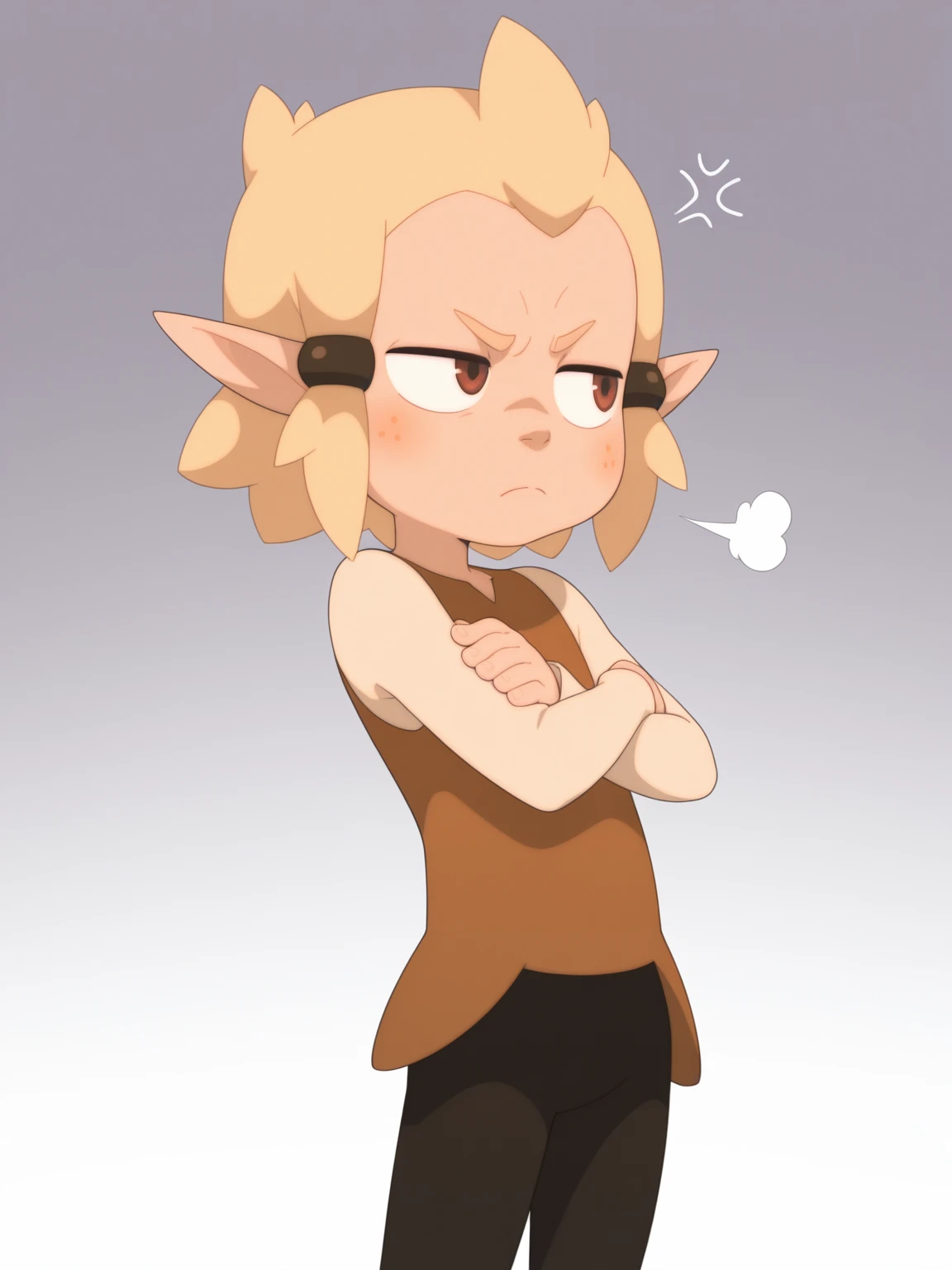 Base Prompts: illuflopin, pointy ears, blonde hair, short hair, hair ornament, hair tubes, brown eyes