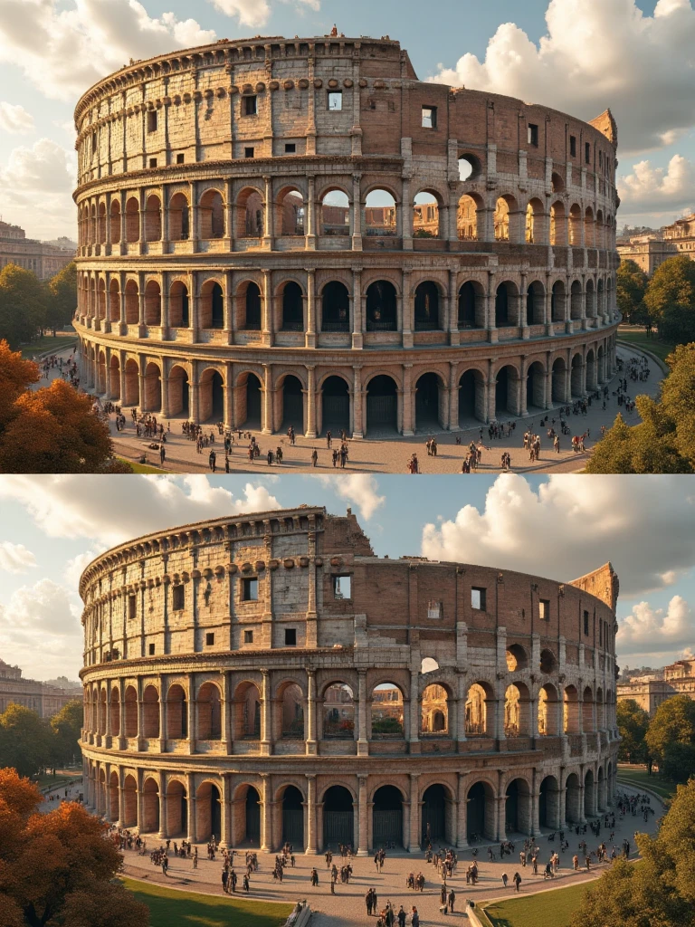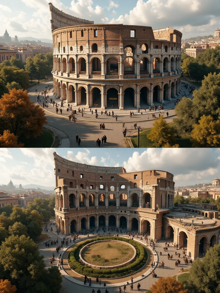 The "Duality of Monuments" model brings to life the rich history and transformation of iconic monuments from around the world, capturing their full splendor in both restored and weathered states. This model excels at creating lifelike and highly detailed depictions of monuments, highlighting their architectural and artistic grandeur when pristine, and their haunting, poetic beauty as they stand worn by the passage of centuries. From the polished marble sculptures of the Trevi Fountain to the leaning elegance of the Tower of Pisa, the model illustrates intricate carvings, natural decay, weathering, moss, cracks, and other textures with remarkable realism. By revealing both states, it provides a profound perspective on the enduring legacy and historical journey of these monuments. Ideal for historical preservation, educational storytelling, immersive visualizations, and artistic renderings, the model offers a captivating experience that bridges past and present.