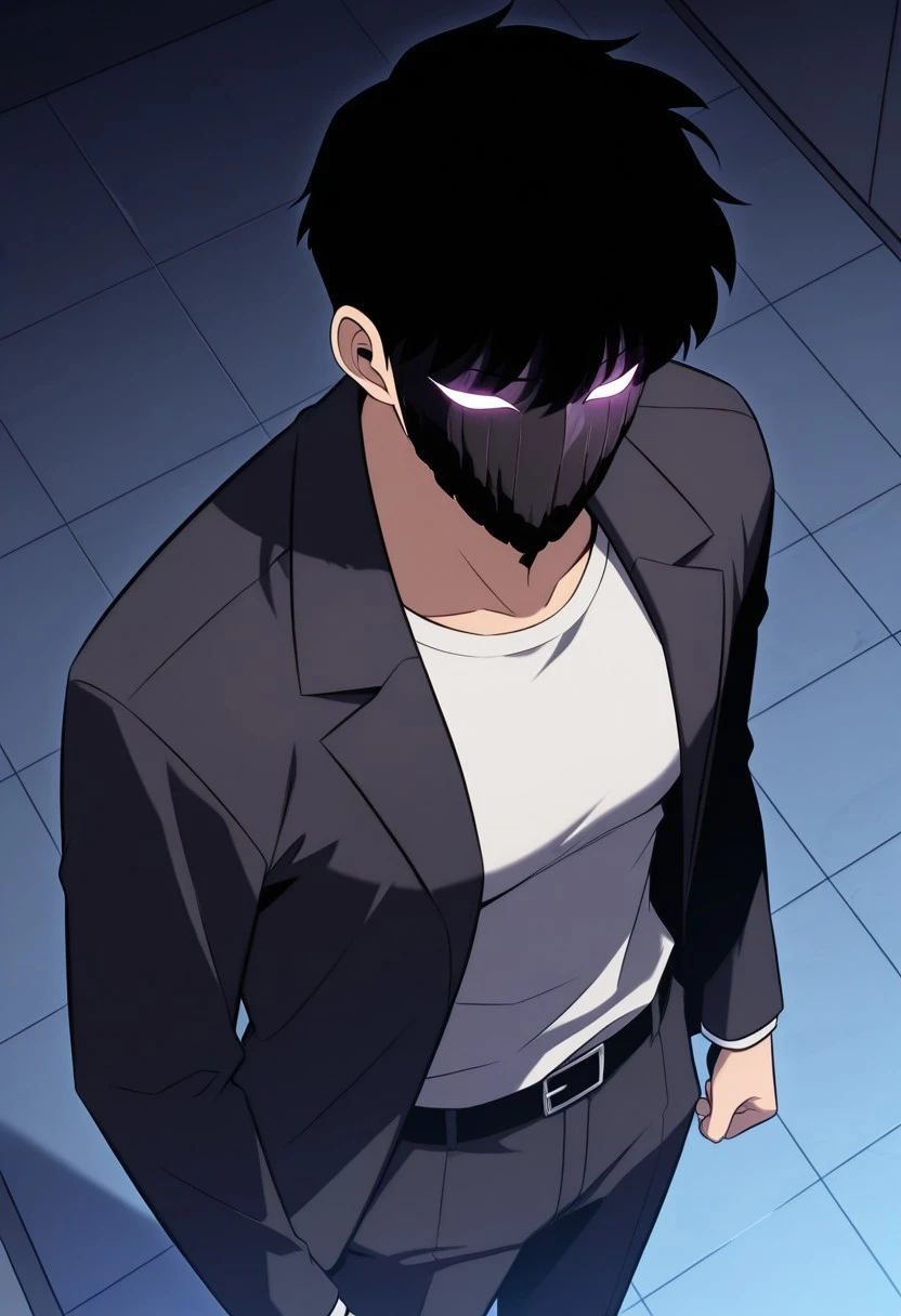 JinhyukKJ, black hair, short hair, mask, glowing eyes,