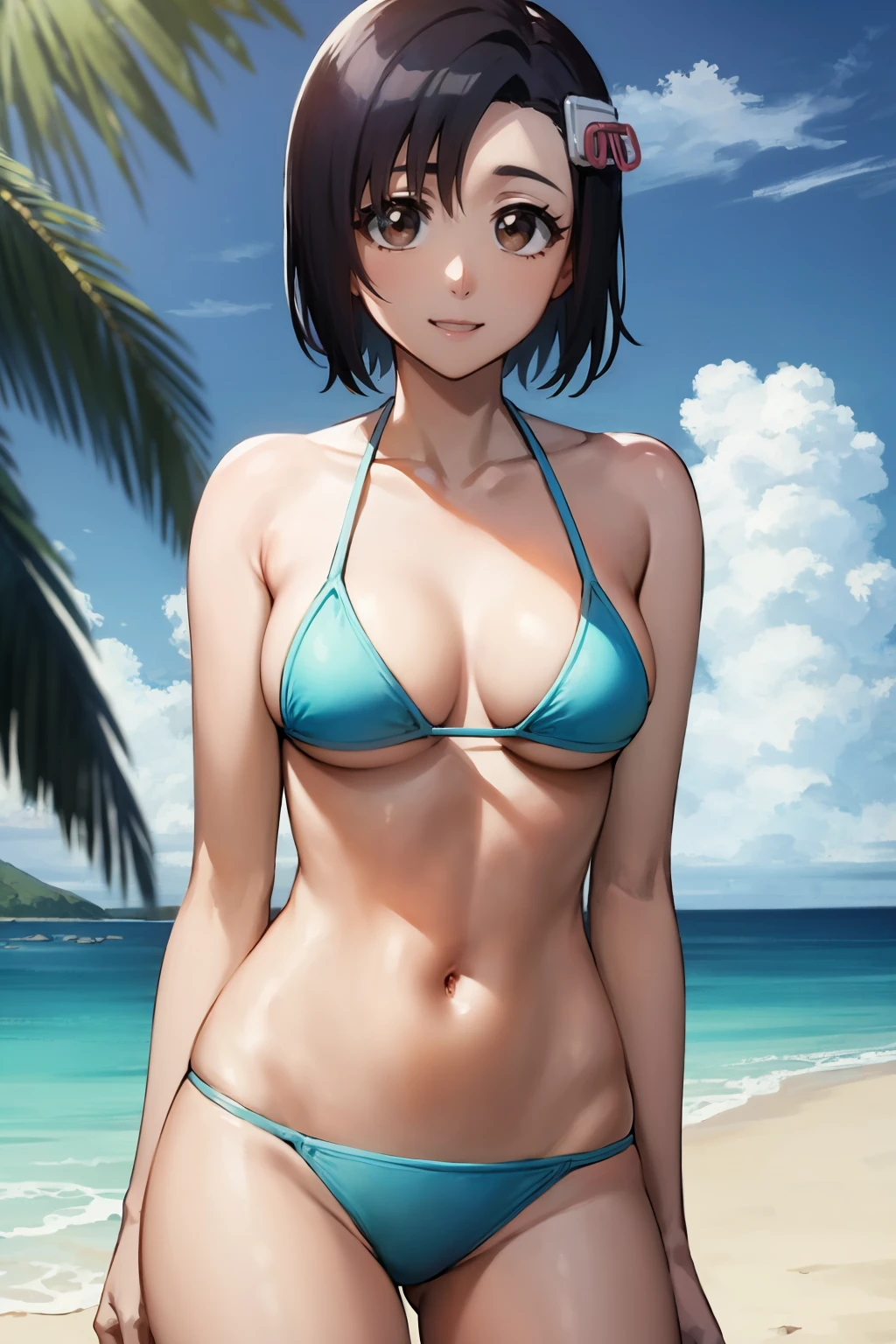 TYBW prompts : 1girl, hinamoritybw, black hair, short hair, brown eyes, hair ornament, hair ribbon