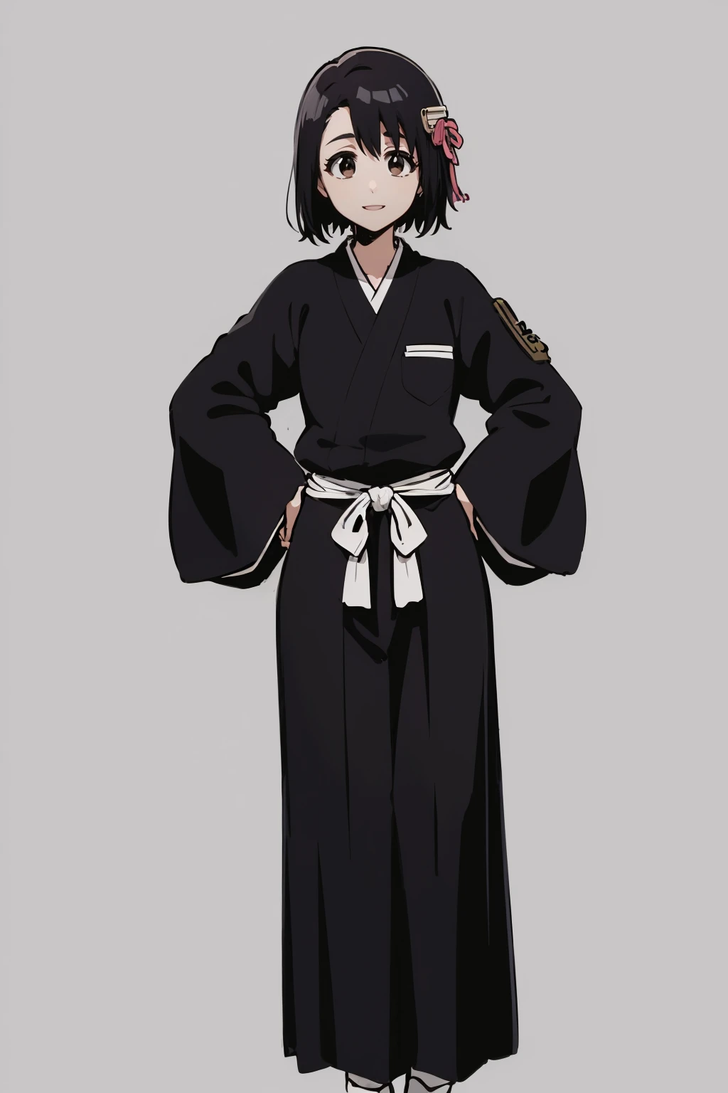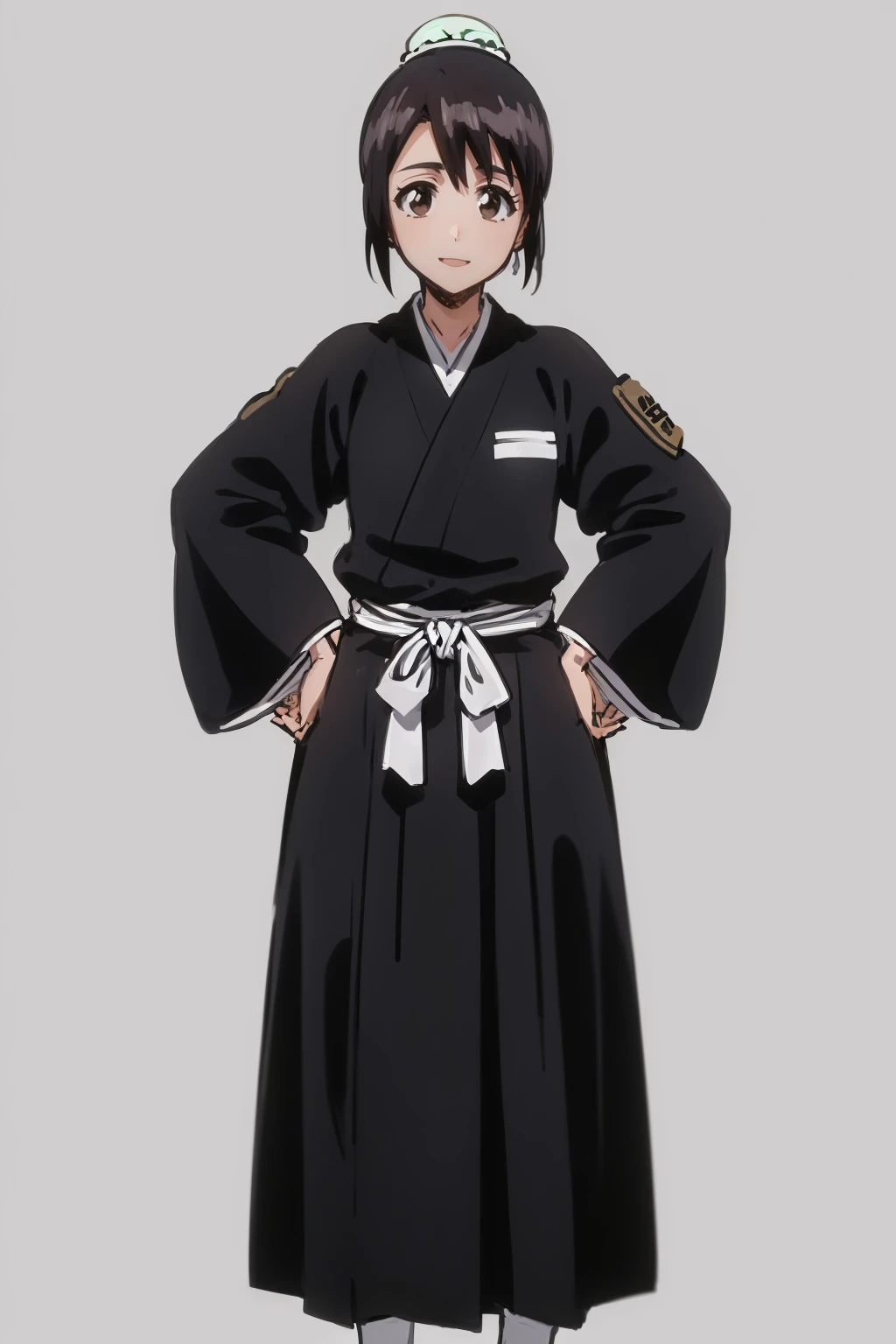 Bleach prompts : 1girl, momohinamori, black hair, single hair bun, bun cover, brown eyes