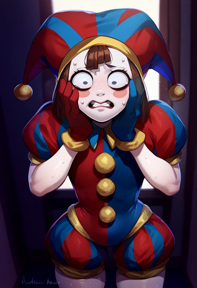 Trigger + Appearance: pomni, colored skin, blush stickers
