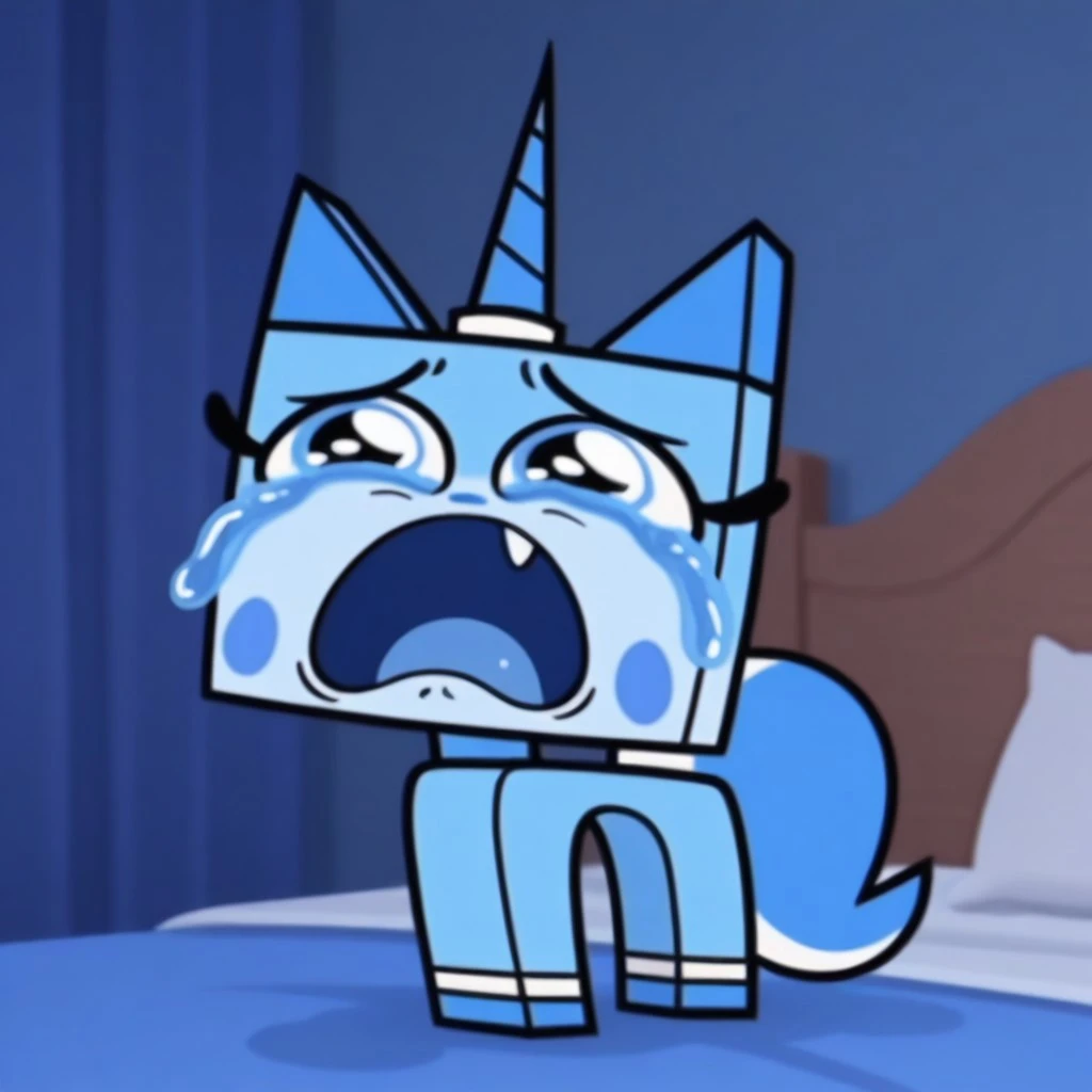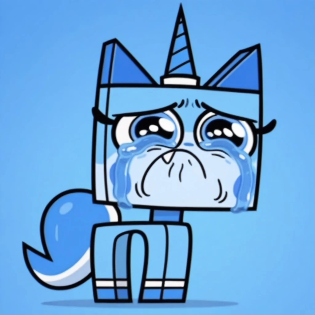 sadunikitty, cat, blue fur, blue eyes, blue horn, blush stickers, fang, blue tail