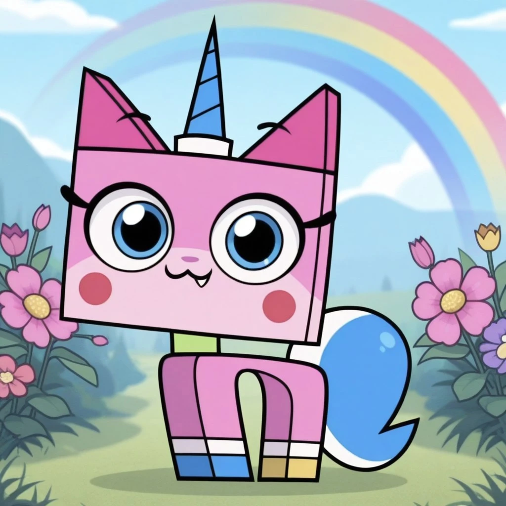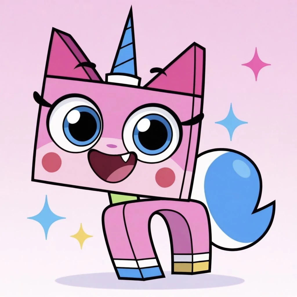 unikittycn, cat, pink fur, blue eyes, blue horn, blush stickers, fang, blue tail