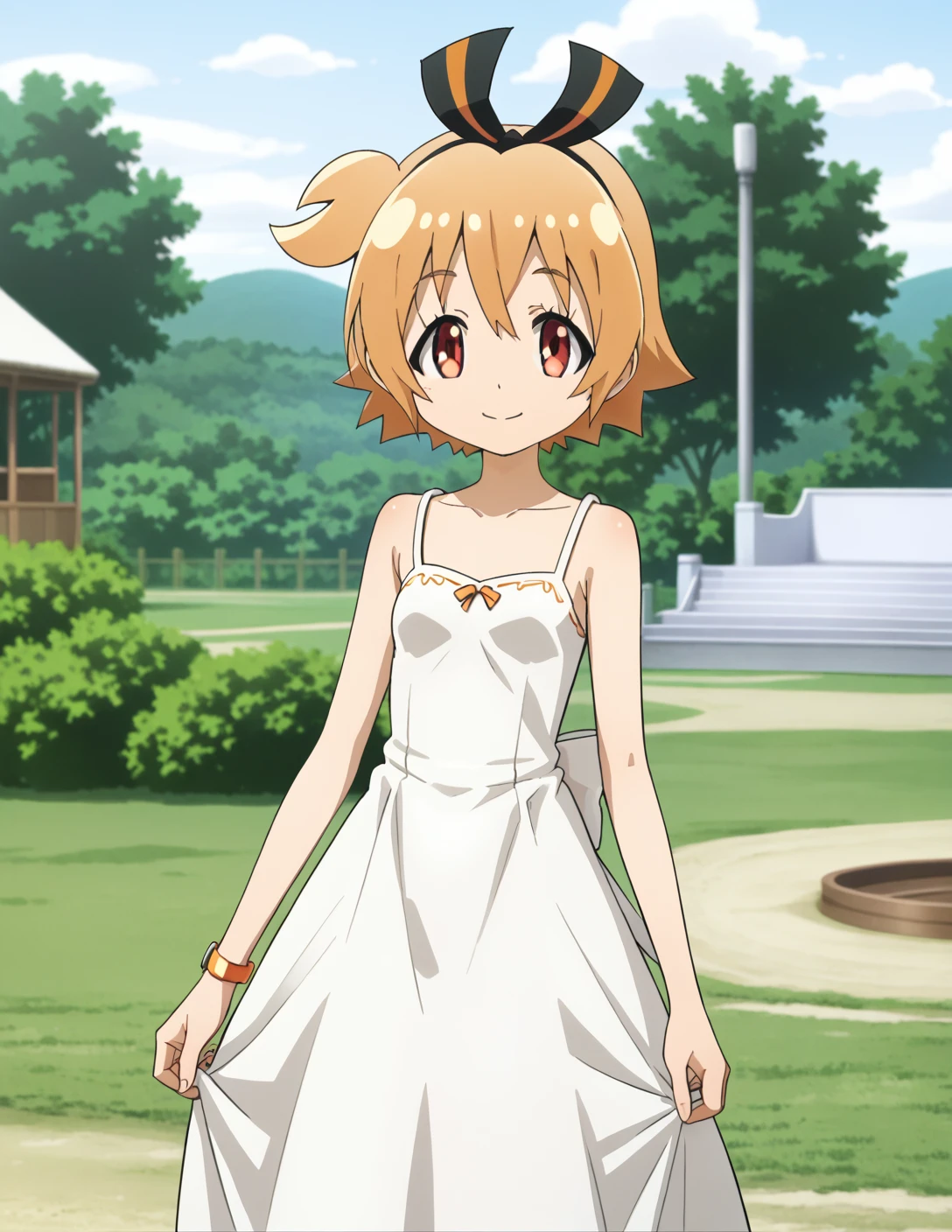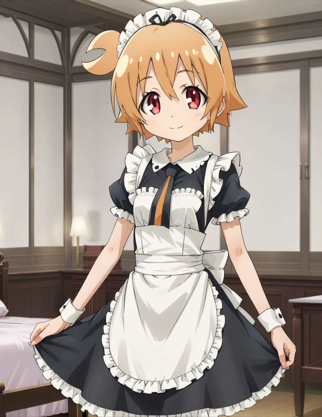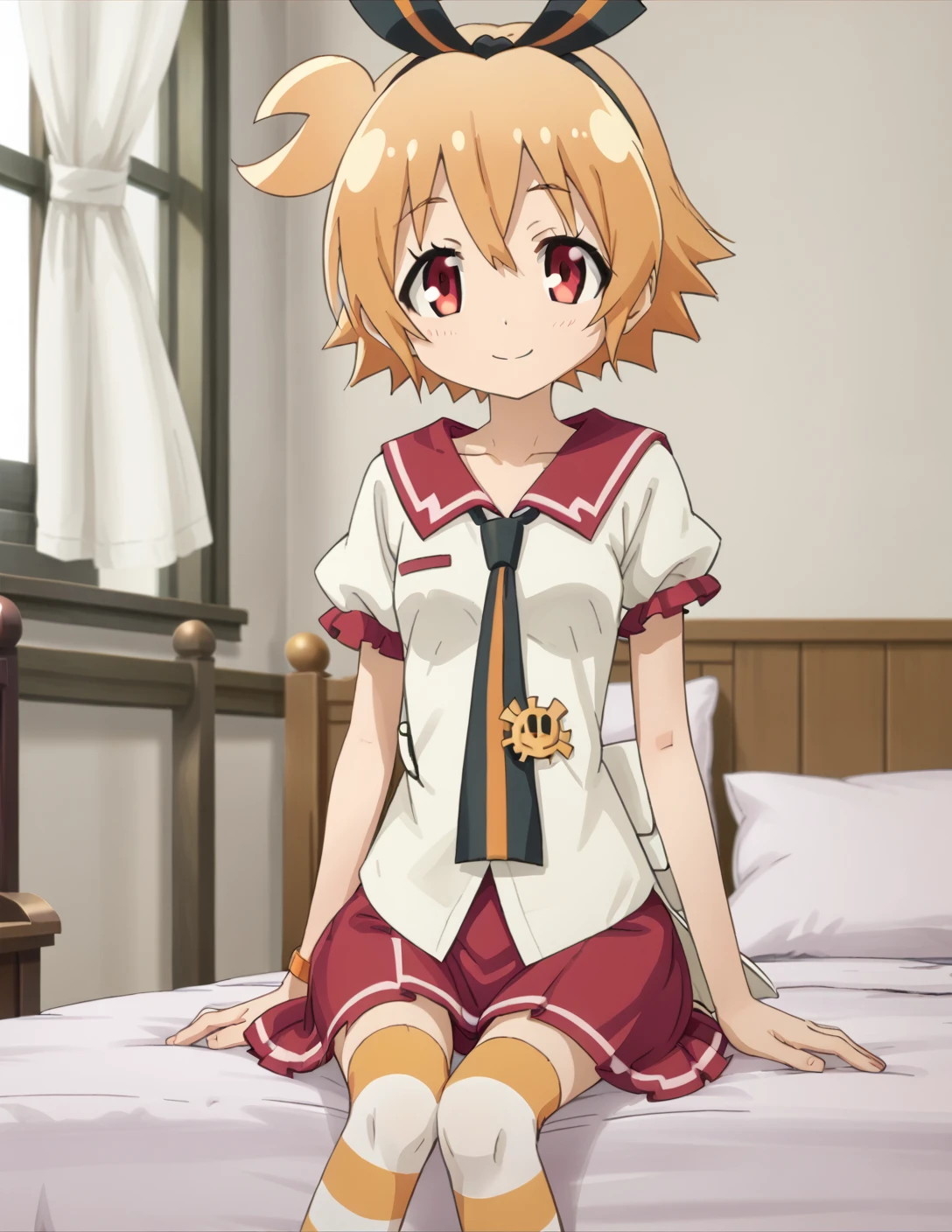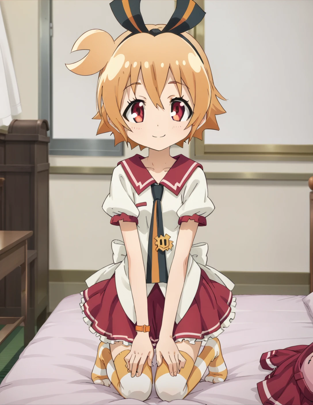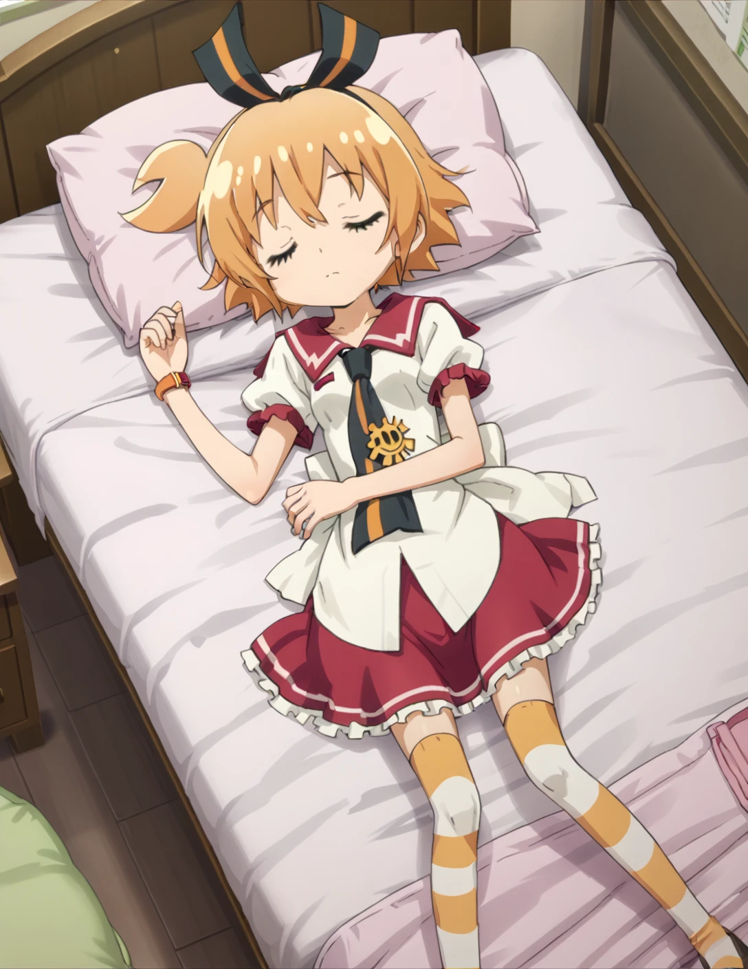 AkariTenebrae,very long hair, school uniform,hair over one eye, expressionless, choker, Gloves,