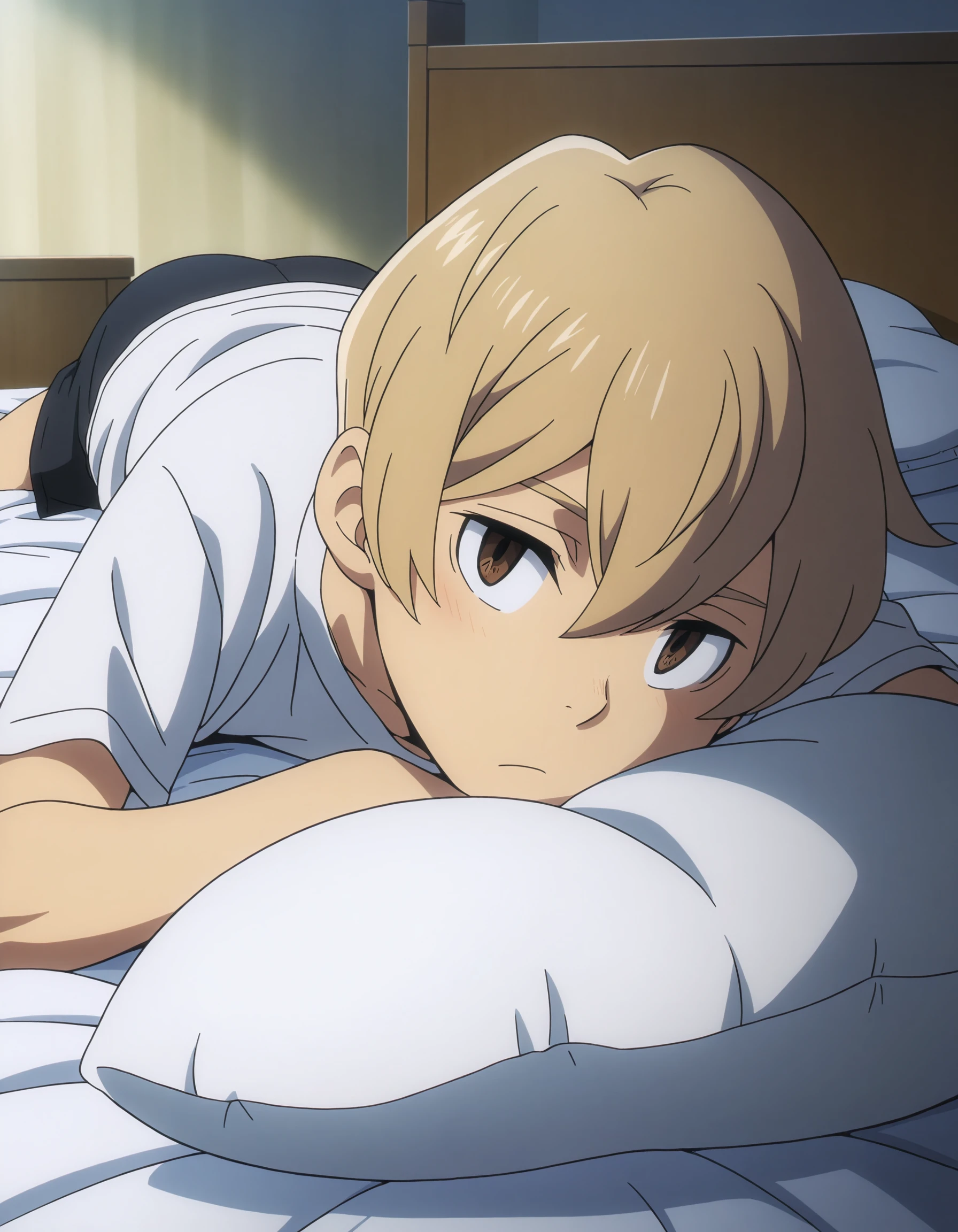 Trigger Words :kenya kobayashi\(young\), male focus, 1boy, solo, brown eyes, blonde hair