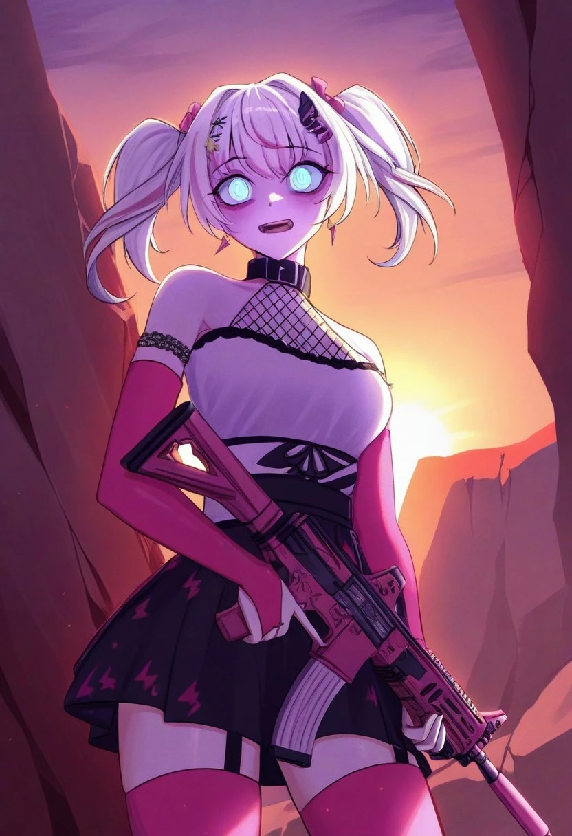RinkouAshelia, twintails, white hair, streaked hair, blue eyes