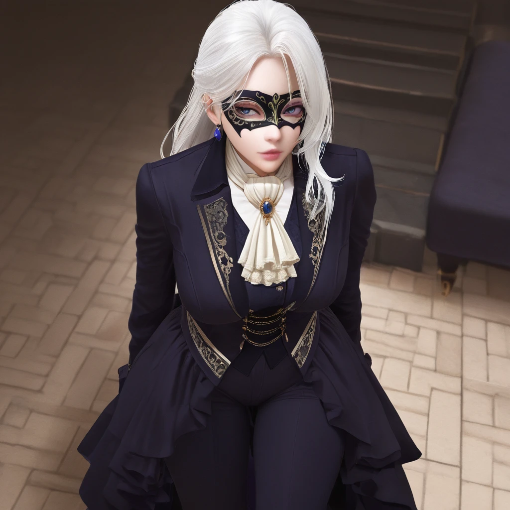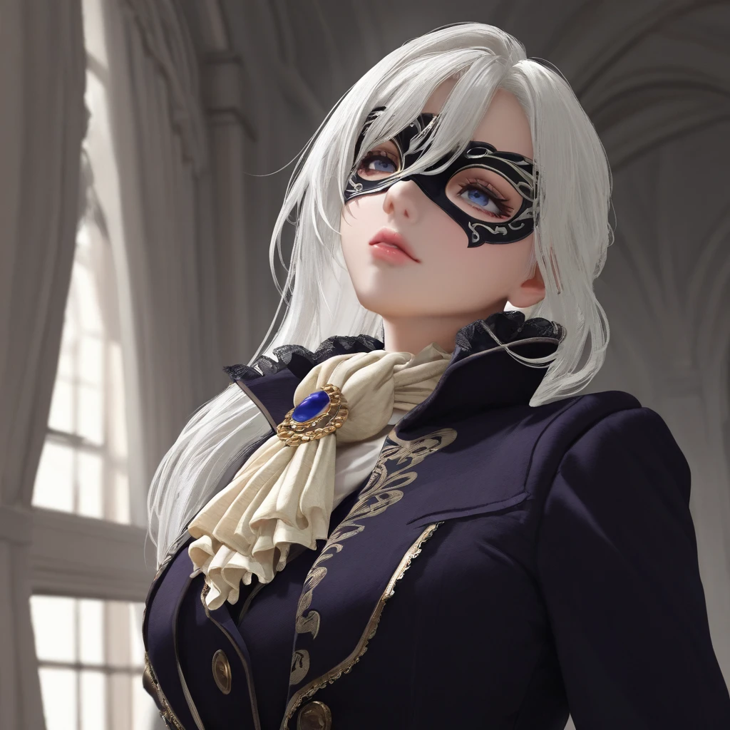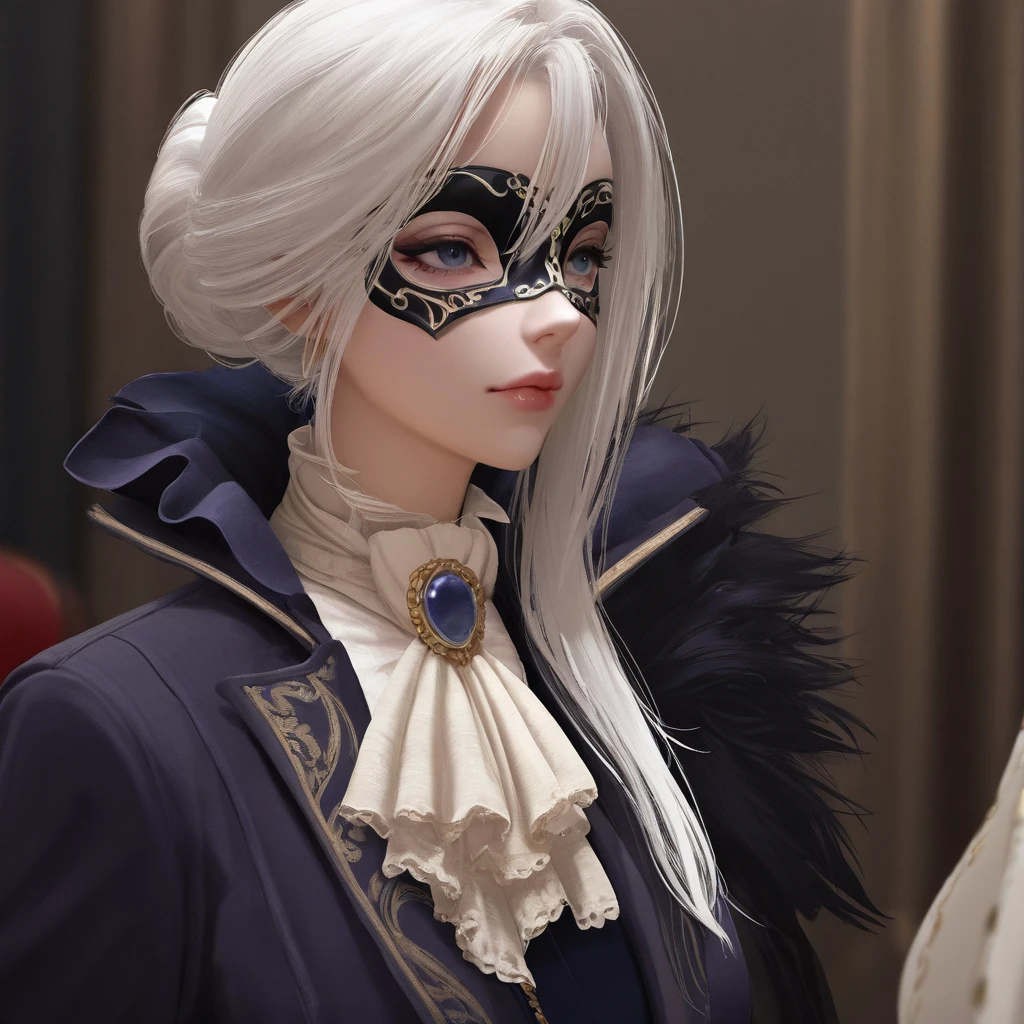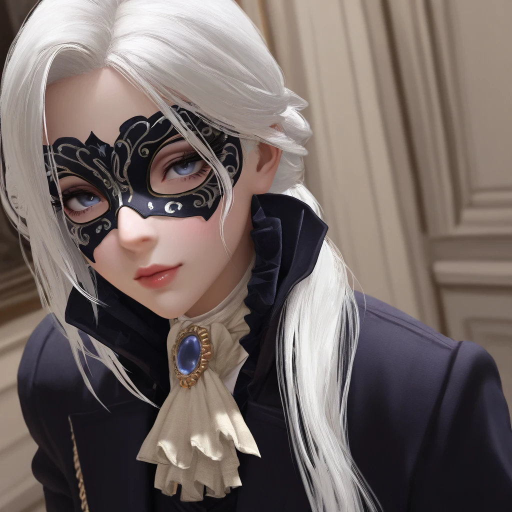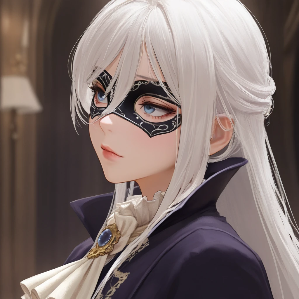 DDuchess,white hair,long hair,Masquerade Mask,ascot