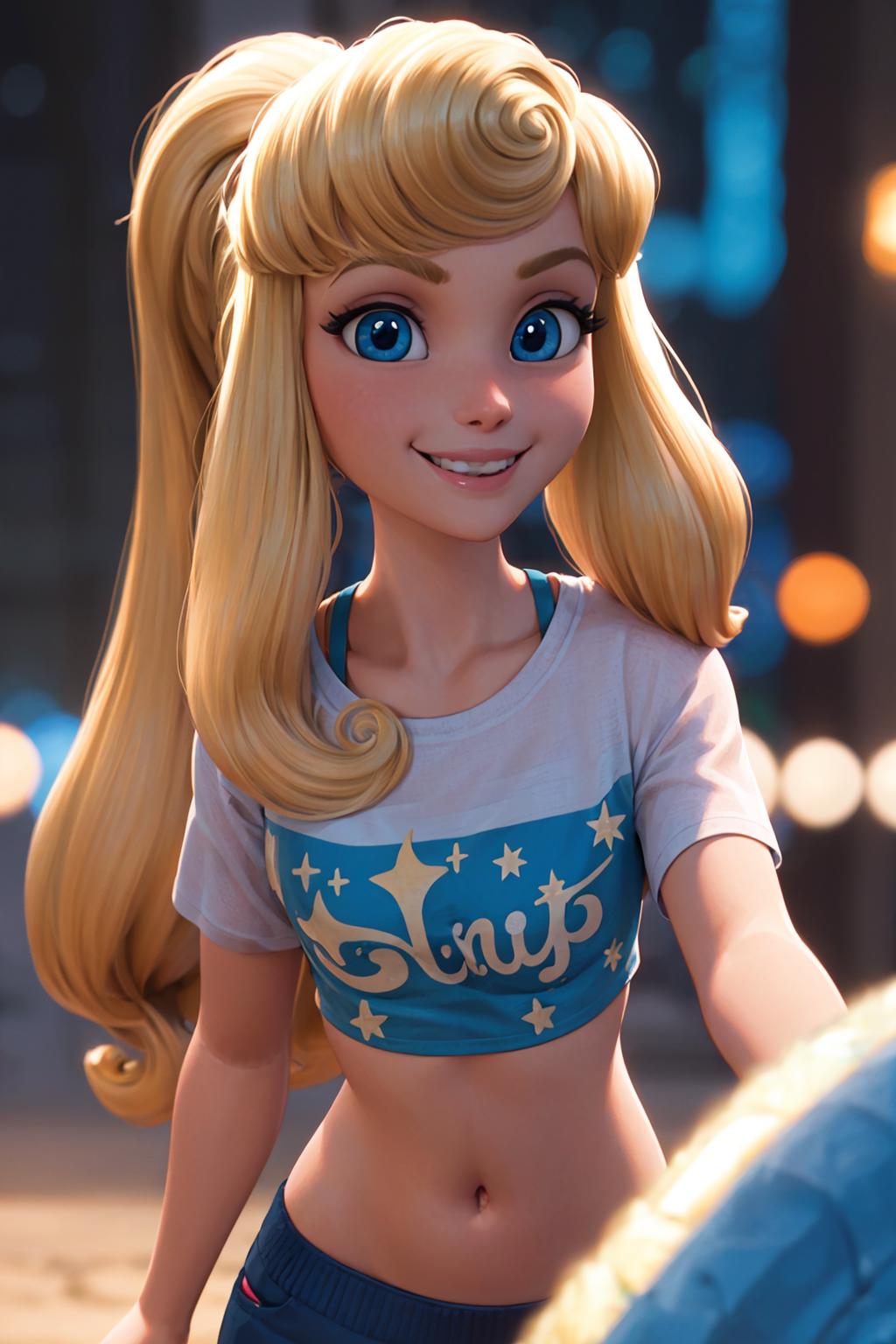 Triggerword is auroraodd, if details get lost just add some variation of 1girl, curly bangs, curly hair, long hair, blonde hair, blue eyes, makeup and that should help maintain likeness
