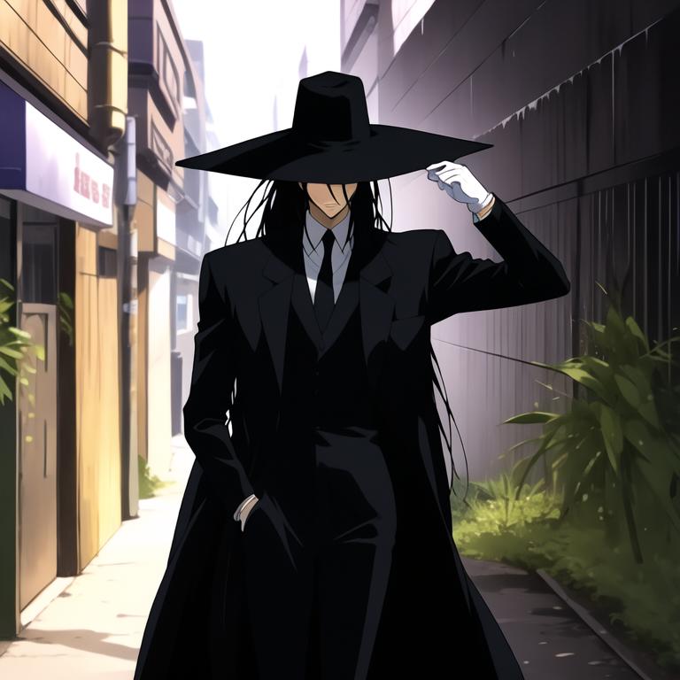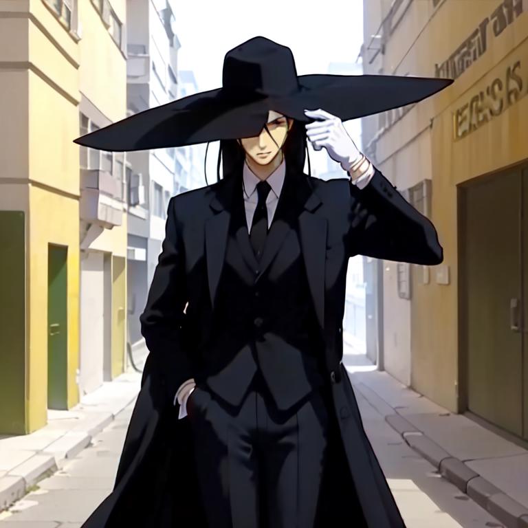 Model created after Getbackers' Kuroudo Akabane, the mysterious tall man with the large black hat. The model comes in two versions. One is severely underbaked and one's severely overbaked. The results may vary, of course, but in my opinion, the underbaked version far surpasses the overbaked one.