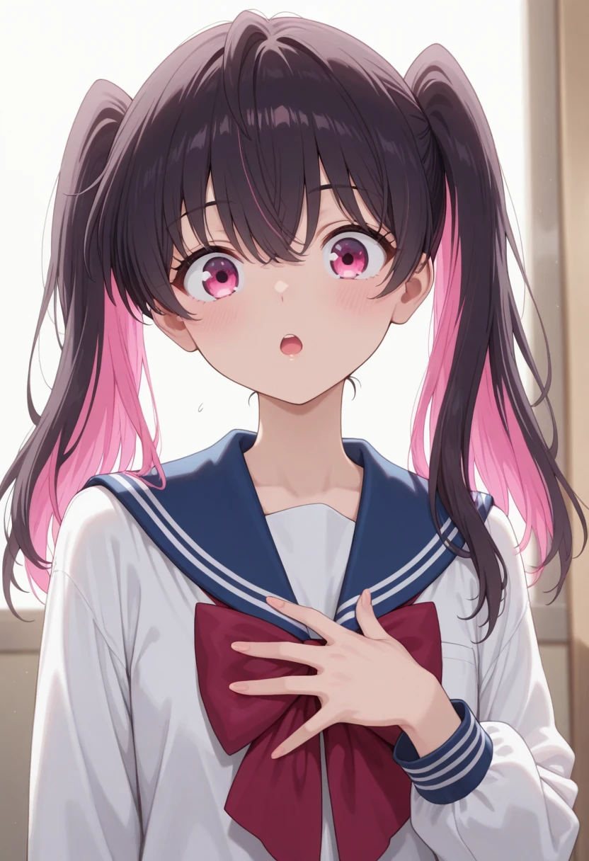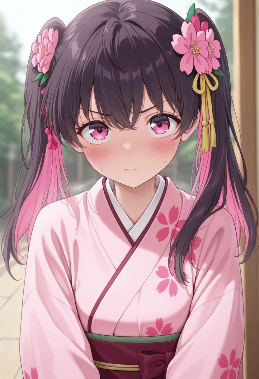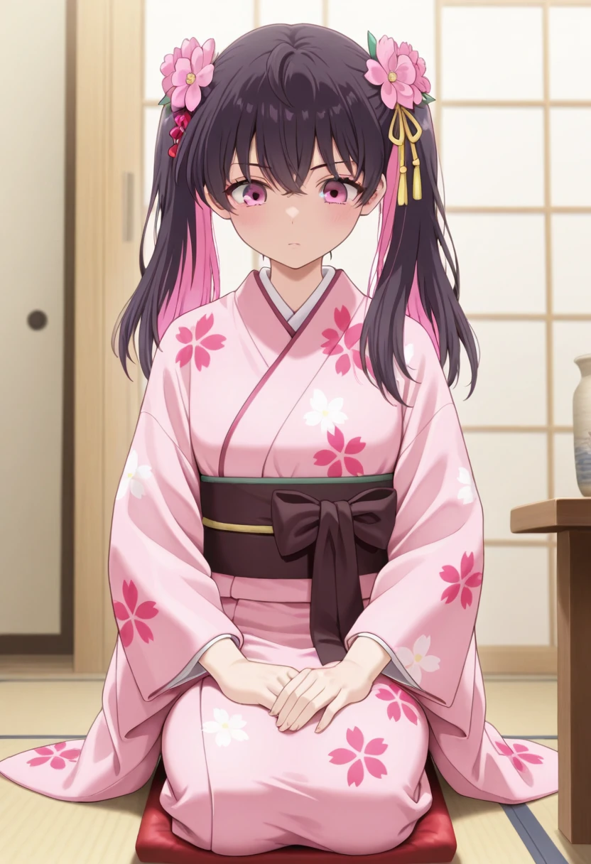Trigger Words: yaotome sakura, long hair, black hair, colored inner hair, pink hair, pink eyes, multicolored hair