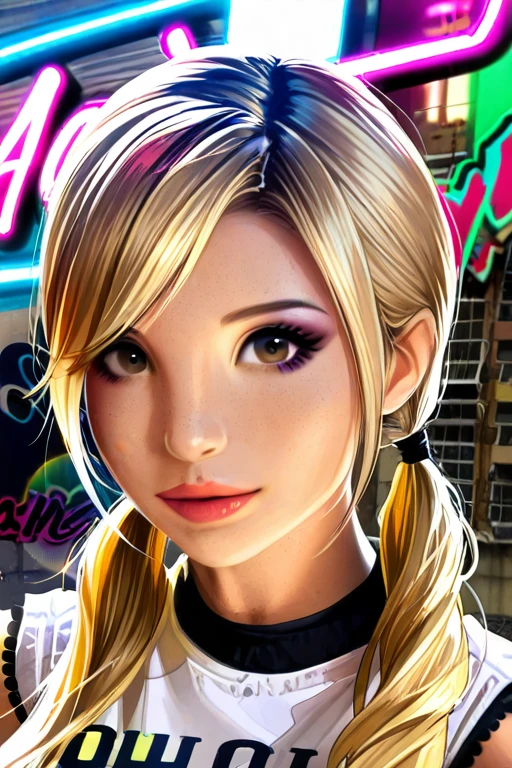 Additional keywords: blonde hair, long hair, brown eyes, lips