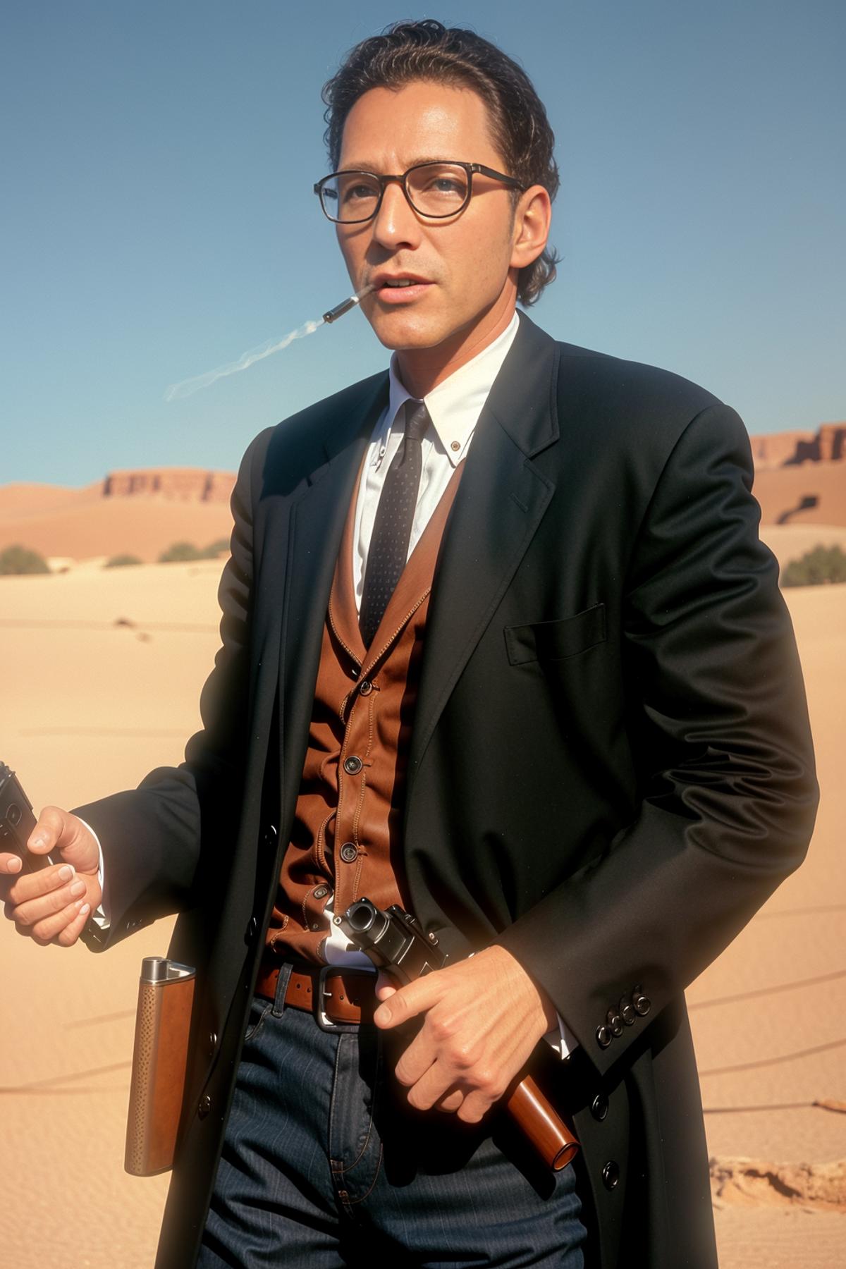 "Draft" of a LoRA used to generate images of musician & mathematician Tom Lehrer. Works best with close-up shots, farther shots with larger canvases, or smaller canvases with hires. fix.