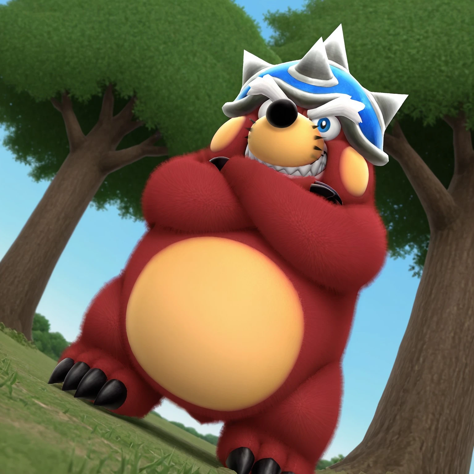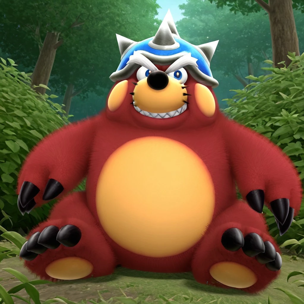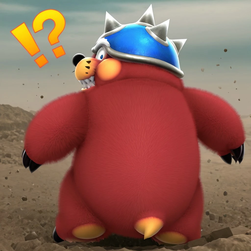 Tags: 3d, mole, male, brown fur, furry male, two-tone fur, blue helmet, spiked helmet, white eyebrows, black nose, claws, toe claws, black claws, beige cheek spots, countershade torso, blue eyes, sharp teeth