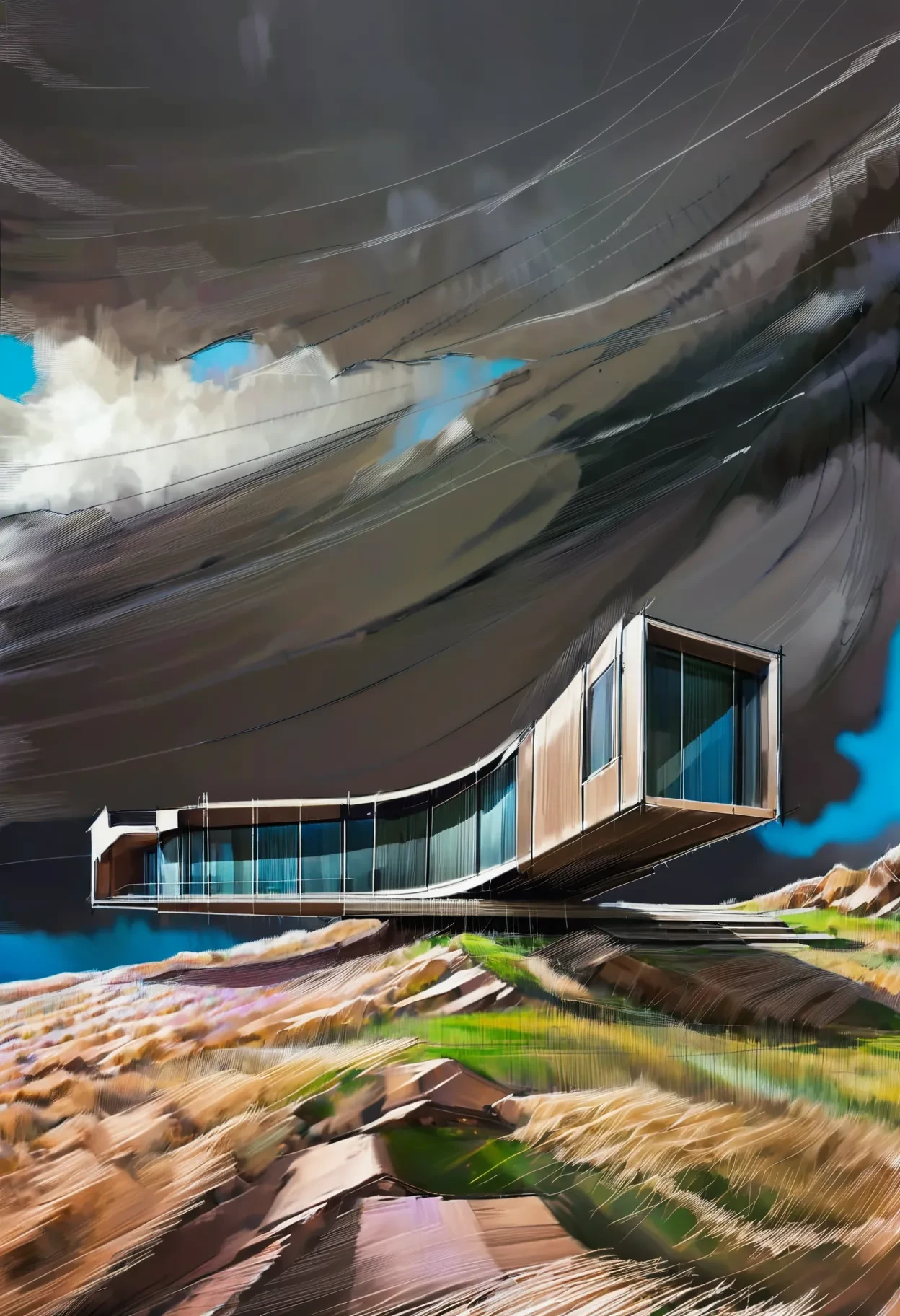 This is a SDXL Lora trained on Kenan Pence artworks presentsing a unique fusion of architectural visualization and digital painting. Kenan Pençe's style appears to be characterized by a bold blend of futurism and expressionism, creating structures that are imaginative and striking. His architectural forms are often angular, fragmented, or sweeping, suggesting movement and fluidity despite their solid appearance.