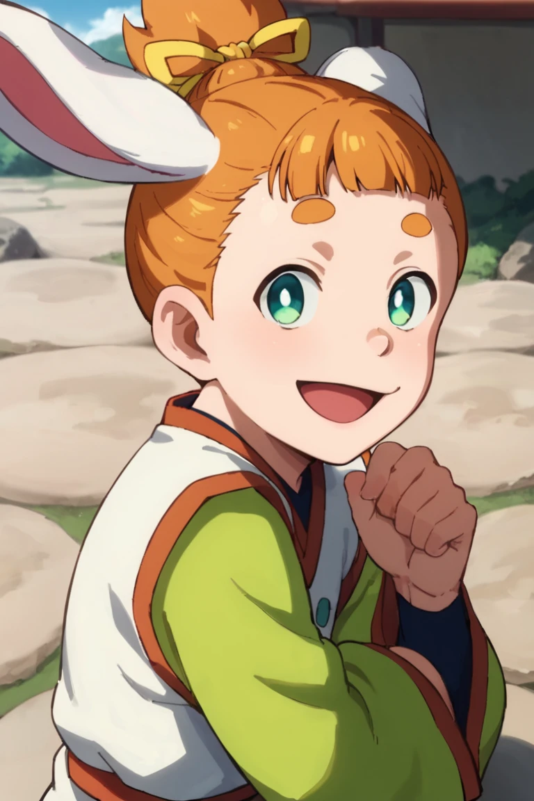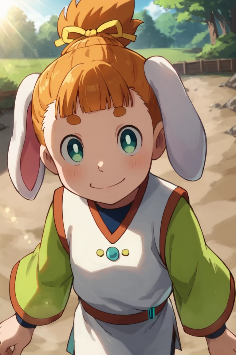Aru,orange hair,hair ribbon,ponytail,aqua eyes,