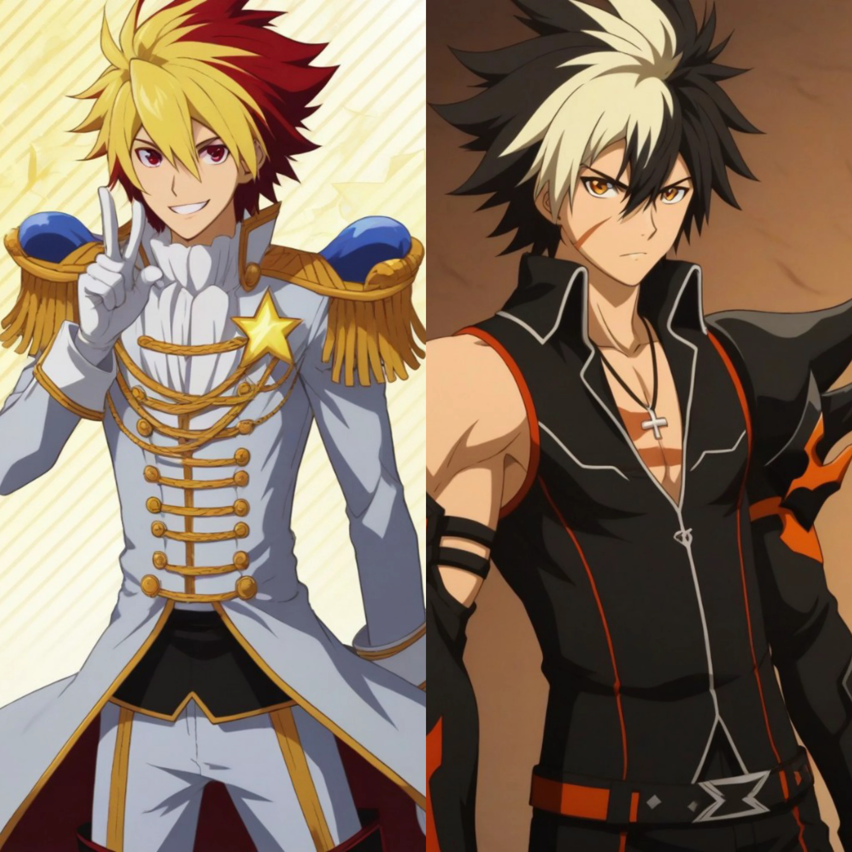 Takuto Tsunashi Ginga Bishounen, multicolored hair, two-tone hair, red eyes
