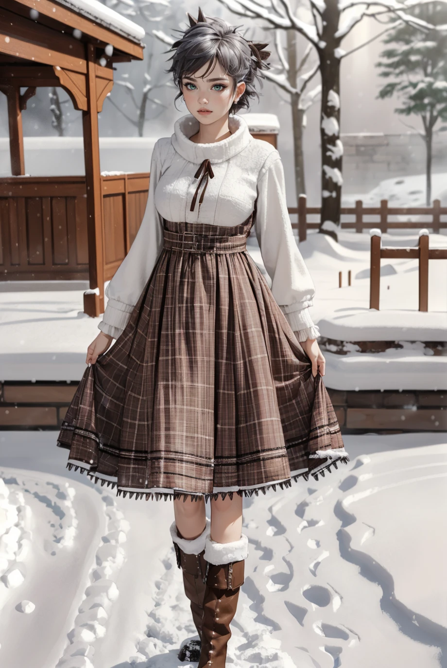 Keywords: br0wn_Dr3ss_1, brown plaid dress, frill